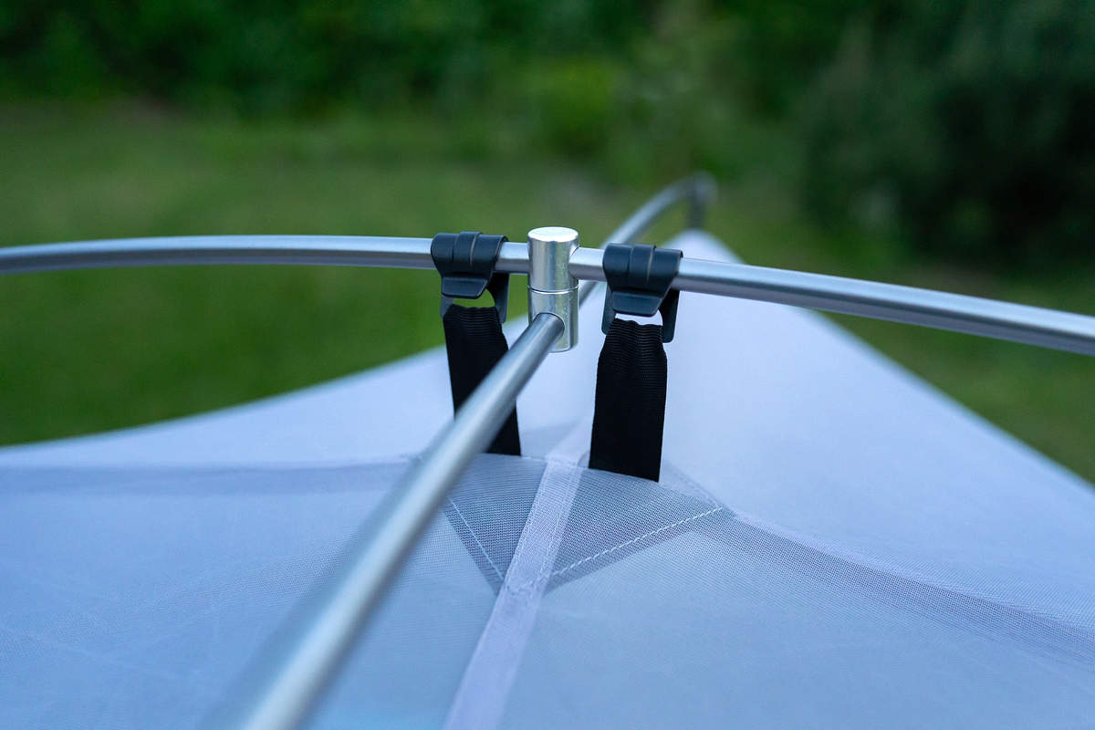 Riešenie predstavujú kúsky s vonkajšou konštrukciou, pri ktorých postupujeme presne opačne. Zo všetkého najprv postavíme vonkajší stan, do ktorého potom pekne v suchu vztýčime spálňu.