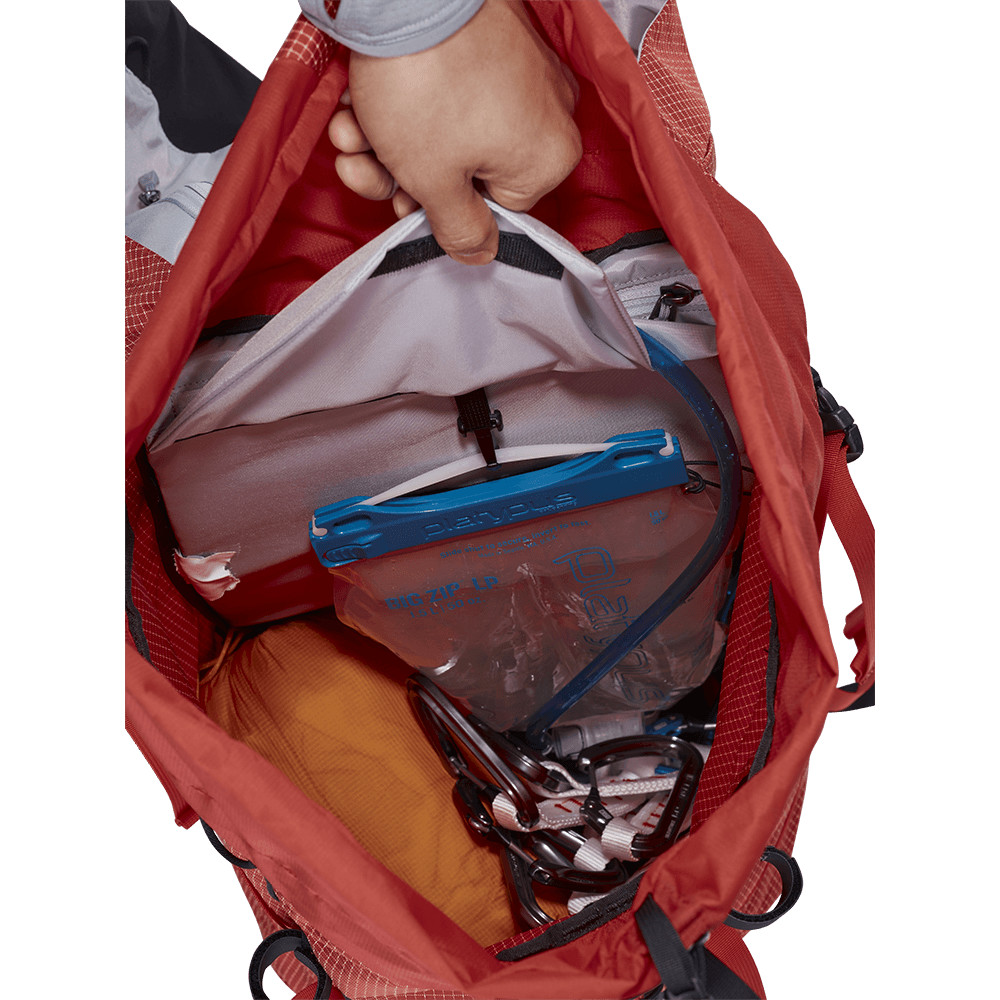 Na popruh pod víko připnout lano, z čela cepíny a dovnitř hydrovak. Milovníky precizní práce potěší stahování hlavní komory - jednoduché a funkční.