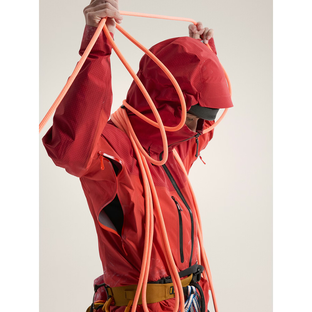 Bunda kombinuje dva typy tkanín pre zníženie hmotnosti. 3-vrstvová odolná tkanina GORE-TEX Pro 2.0 v namáhaných oblastiach, ako sú ramená, rukávy a kapucňa, a tkanina Hadron™ 3L Gore-tex na tele a v podpazuší, ktorá je ľahšia a priedušnejšia.