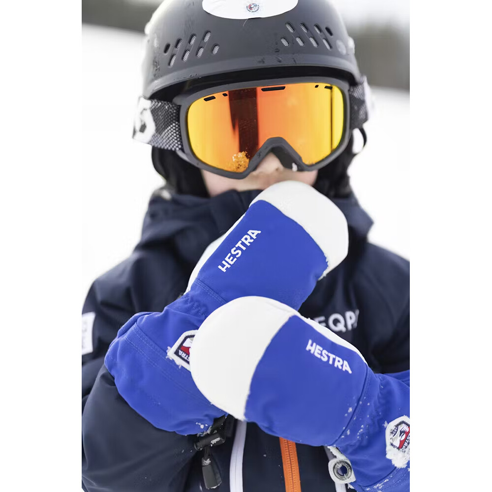 Detské palčiaky Army Leather Heli Ski Jr. od spoločnosti Hestra vhodné na lyžovanie a snowboarding.