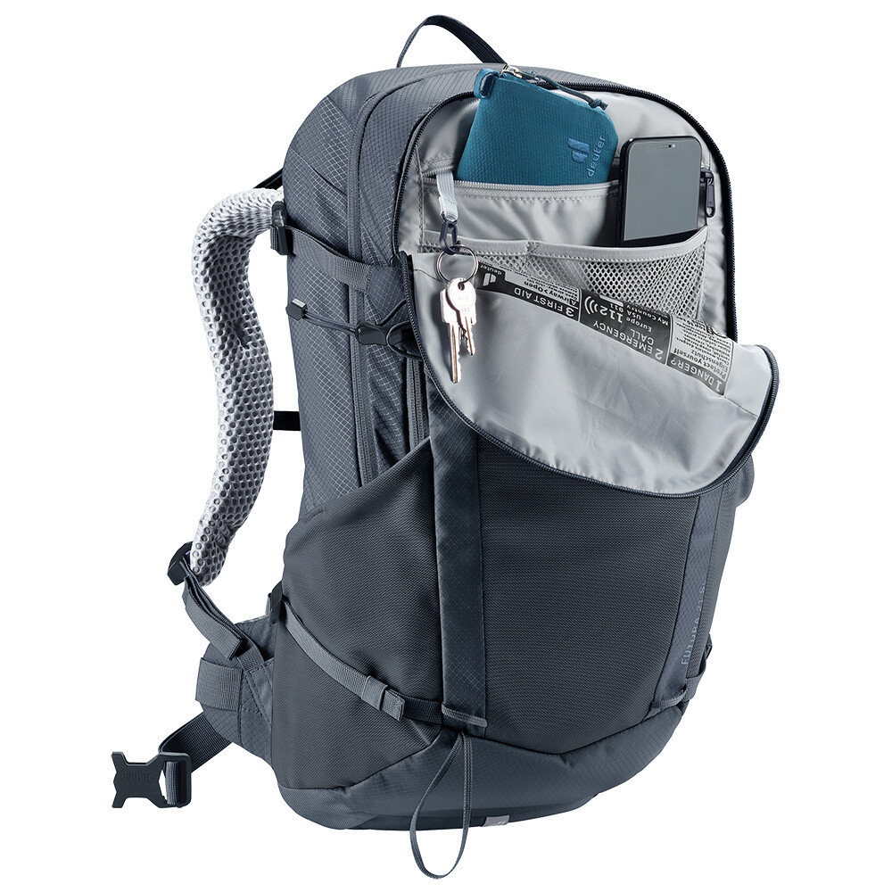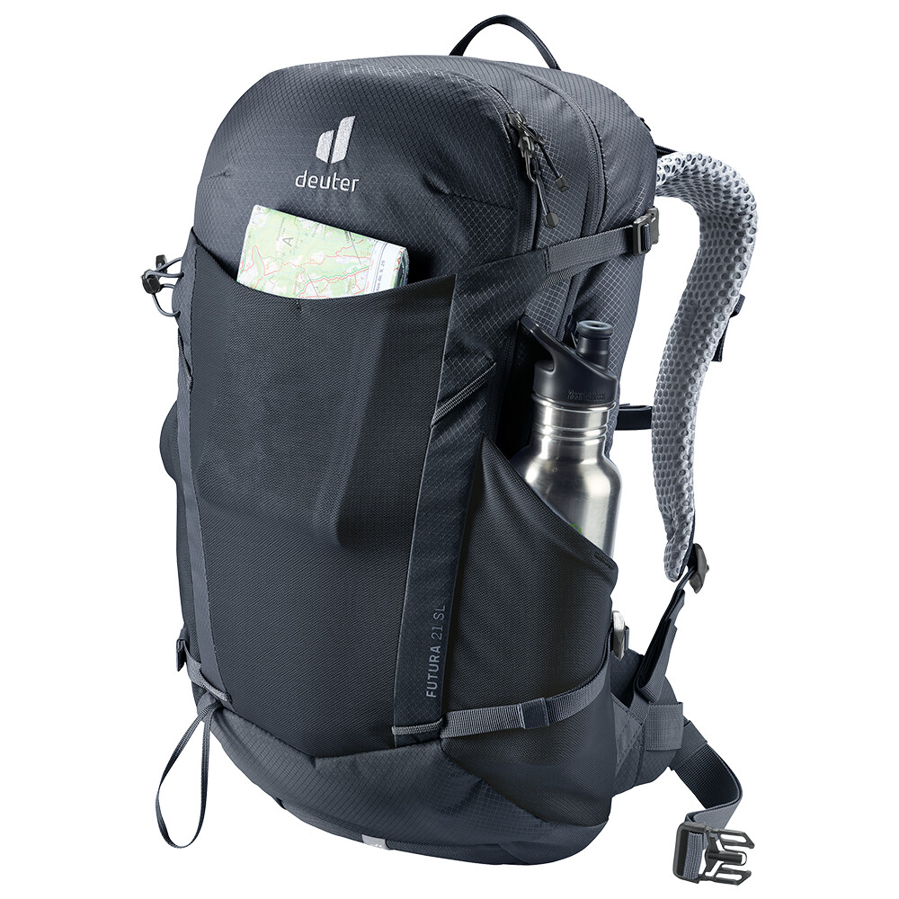 Turistický batoh Futura 21 SL od spoločnosti deuter bude skvelým spoločníkom na objavovanie, či už ide o túry v horách alebo len potulky lesom. Futura má chrbtový systém pozostávajúci z kovovej výstuhy so sieťovinou a polstrovaním okolo chrbtice. Tým je zabezpečená maximálna priedušnosť a optimálne rozloženie hmotnosti medzi ramená a boky. Keďže je batoh určený na turistiku všetkého druhu, ponúka možnosť pripevnenia palíc, sekery na ľad, držiaka na prilbu a jeho súčasťou je aj kryt proti dažďu.