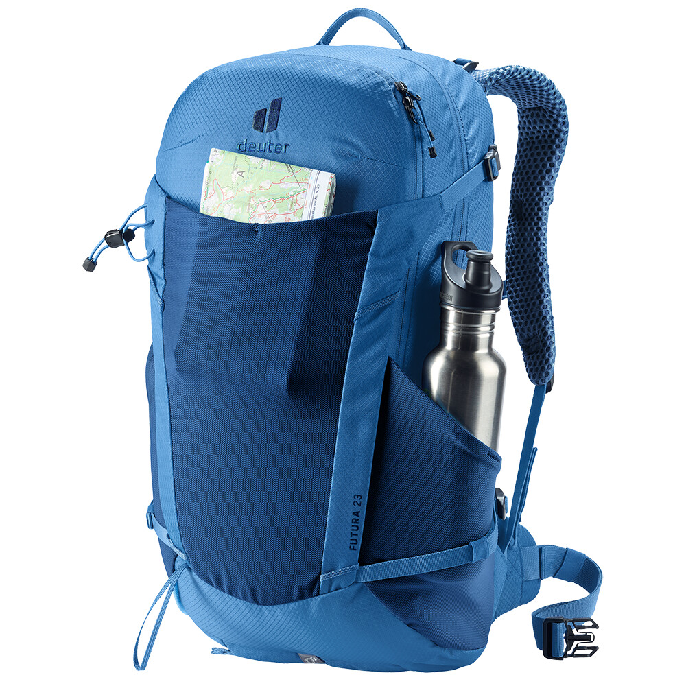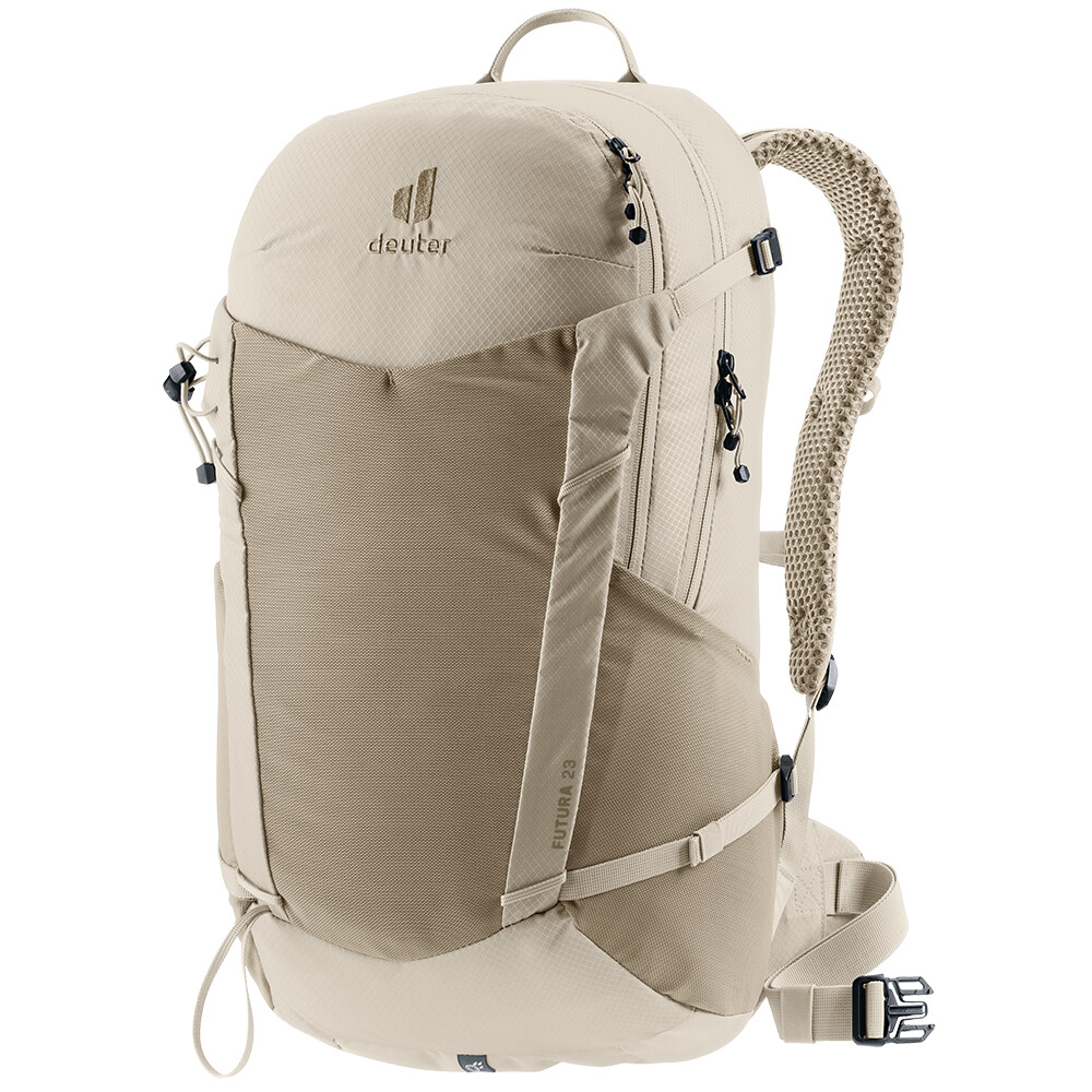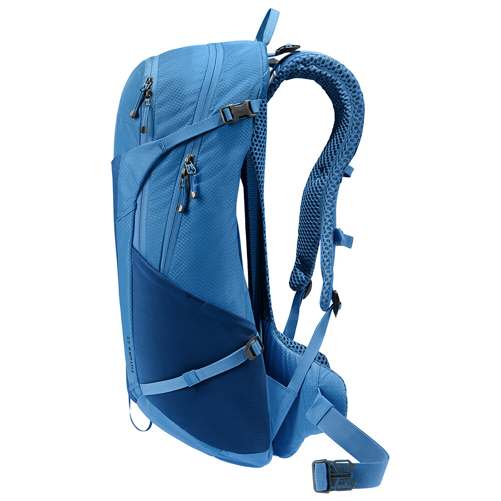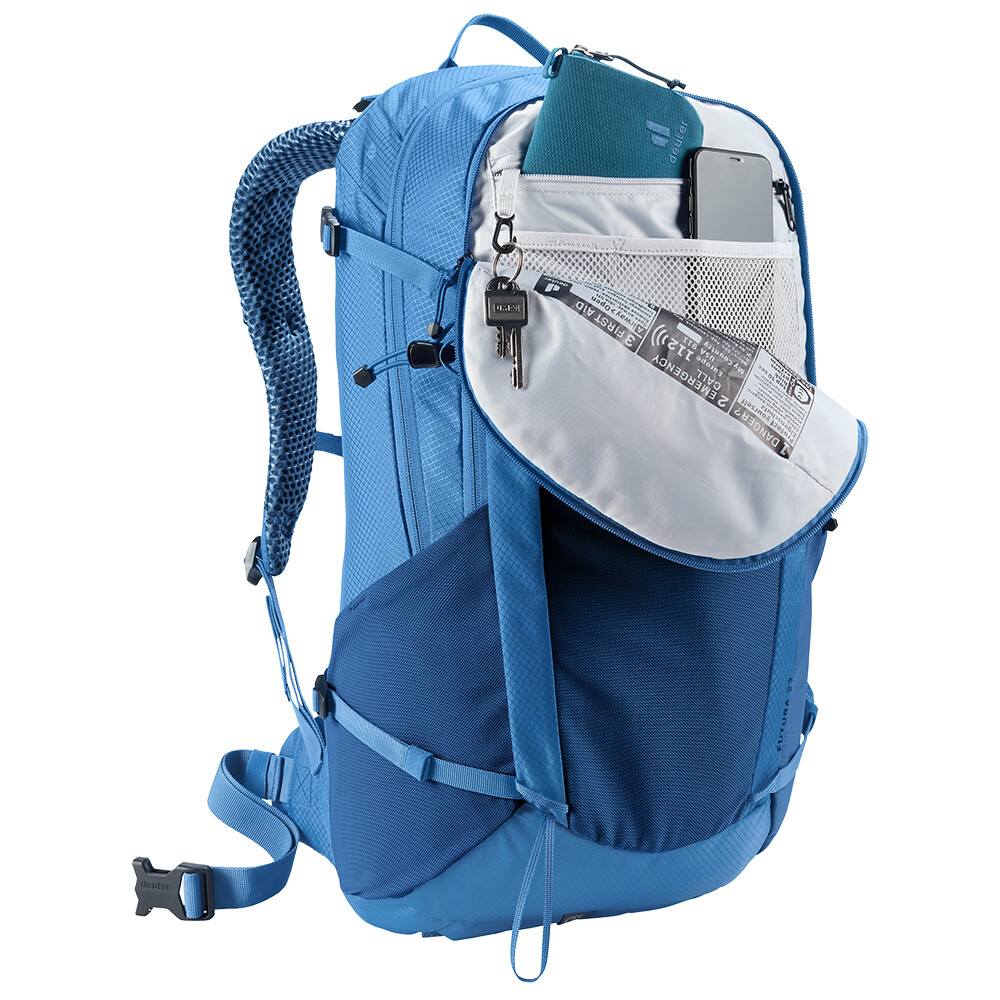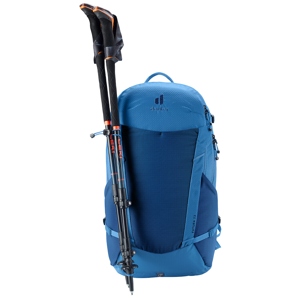 Turistický batoh Futura 23 od spoločnosti deuter bude skvelým spoločníkom na objavovanie, či už ide o túry v horách alebo len potulky lesom. Futura má chrbtový systém pozostávajúci z kovovej výstuhy so sieťovinou a polstrovaním okolo chrbtice. Tým je zabezpečená maximálna priedušnosť a optimálne rozloženie hmotnosti medzi ramená a boky. Keďže je batoh určený na turistiku všetkého druhu, ponúka možnosť pripevnenia palíc, sekery na ľad, držiaka na prilbu a jeho súčasťou je aj kryt proti dažďu.