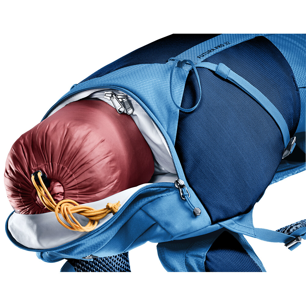 Batoh Futura Pro 32 od spoločnosti deuter bude skvelým spoločníkom pri objavovaní, či už ide o turistiku v horách alebo len o potulky lesom. Futura má chrbtový systém pozostávajúci z kovovej výstuhy so sieťovinou a polstrovaním okolo chrbtice. To zaisťuje maximálnu priedušnosť a optimálne rozloženie hmotnosti medzi ramená a boky. Okrem toho je modelový rad Futura Pro vybavený systémom VariClick, ktorý umožňuje nastaviť jednu z piatich konkrétnych dĺžok chrbta. Keďže je batoh určený na turistiku všetkého druhu, ponúka možnosť pripevnenia palíc, sekery na ľad, držiaka na prilbu a jeho súčasťou je aj pláštenka do dažďa. Pre prehľadnosť zbalenej výbavy má batoh dve oddeliteľné priehradky, ktoré možno v prípade potreby spojiť do jednej veľkej priehradky.