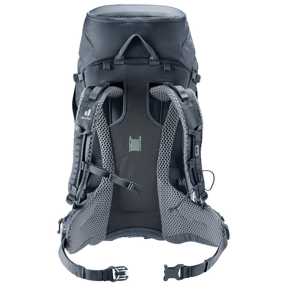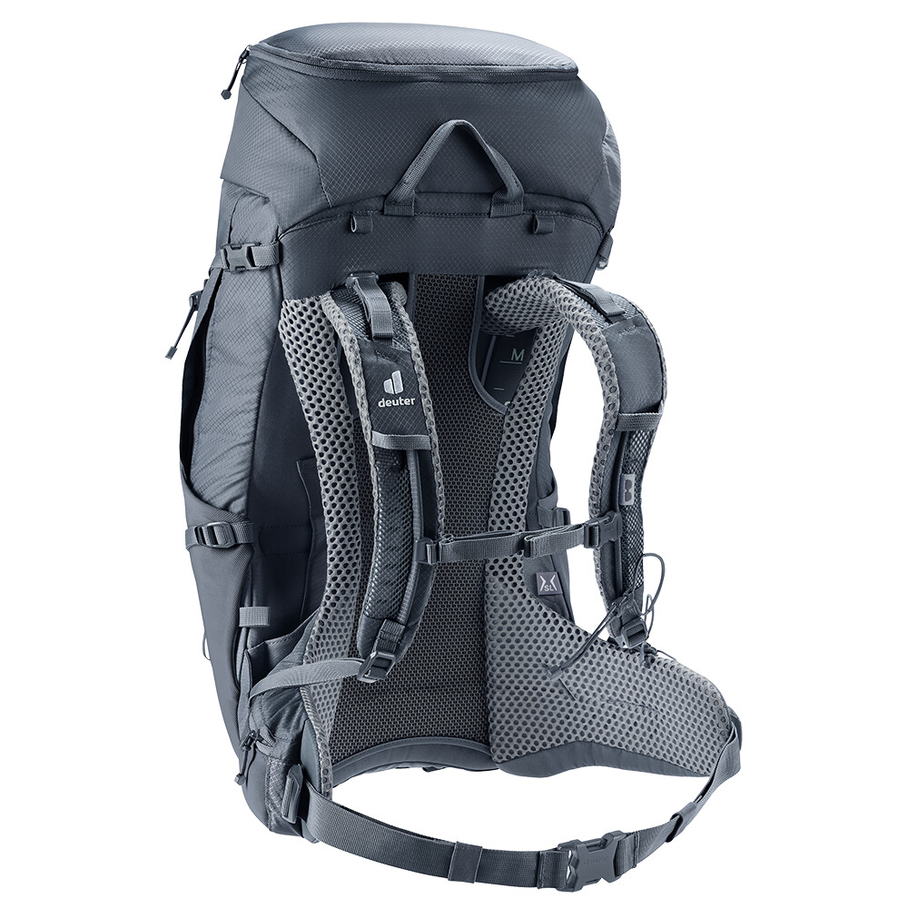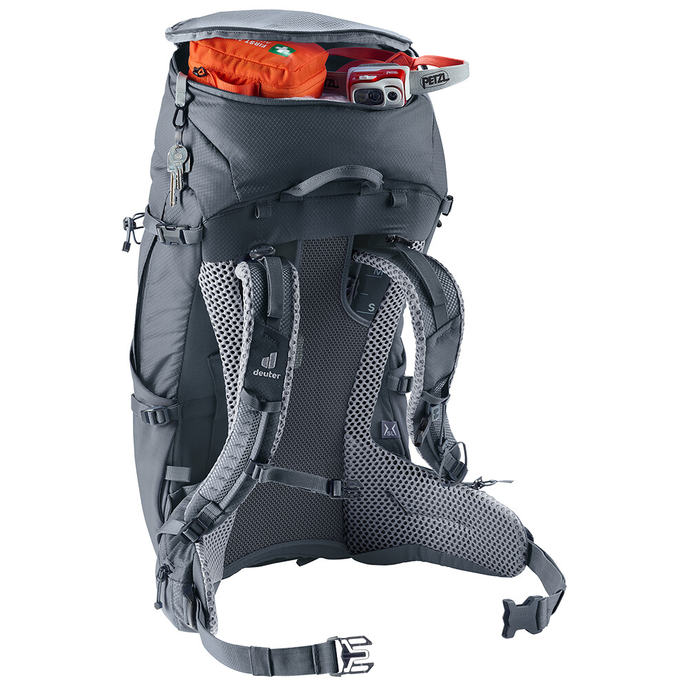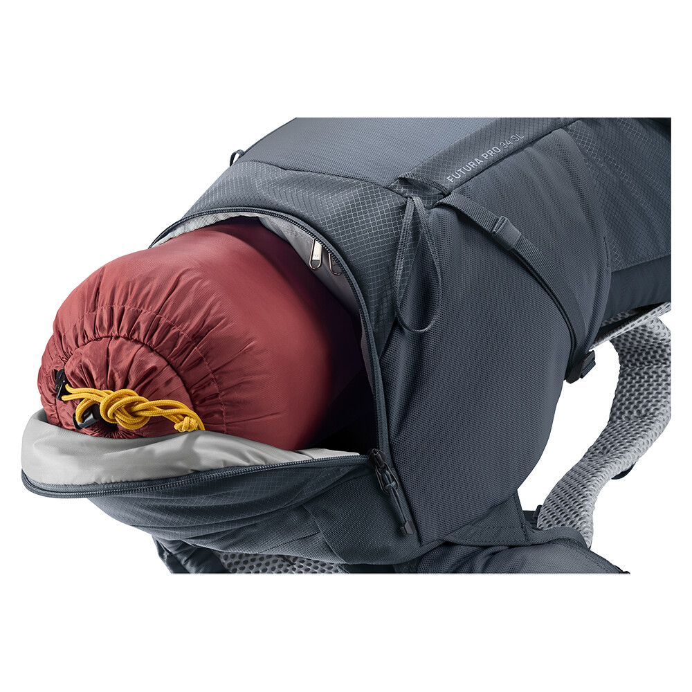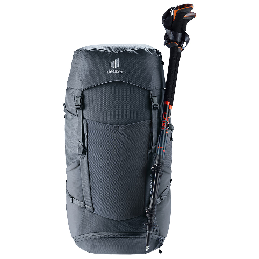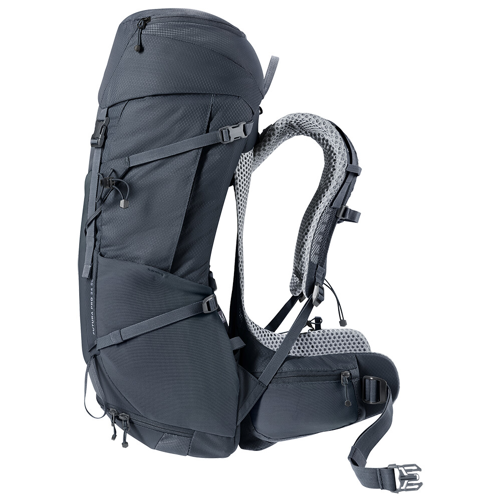 Batoh Futura Pro 34 SL od spoločnosti deuter bude skvelým spoločníkom na vašich objaviteľských výpravách, či už ide o turistiku v horách alebo len o potulky lesom. Futura má chrbtový systém pozostávajúci z kovovej výstuhy so sieťovinou a polstrovaním okolo chrbtice. To zaisťuje maximálnu priedušnosť a optimálne rozloženie hmotnosti medzi ramená a boky. Okrem toho je modelový rad Futura Pro vybavený systémom VariClick, ktorý umožňuje nastaviť jednu z piatich konkrétnych dĺžok chrbta. Keďže je batoh určený na turistiku všetkého druhu, ponúka možnosť pripevnenia palíc, sekery na ľad, držiaka na prilbu a jeho súčasťou je aj pláštenka do dažďa. Pre prehľadnosť zbalenej výbavy má batoh dve oddeliteľné priehradky, ktoré možno v prípade potreby spojiť do jednej veľkej priehradky.