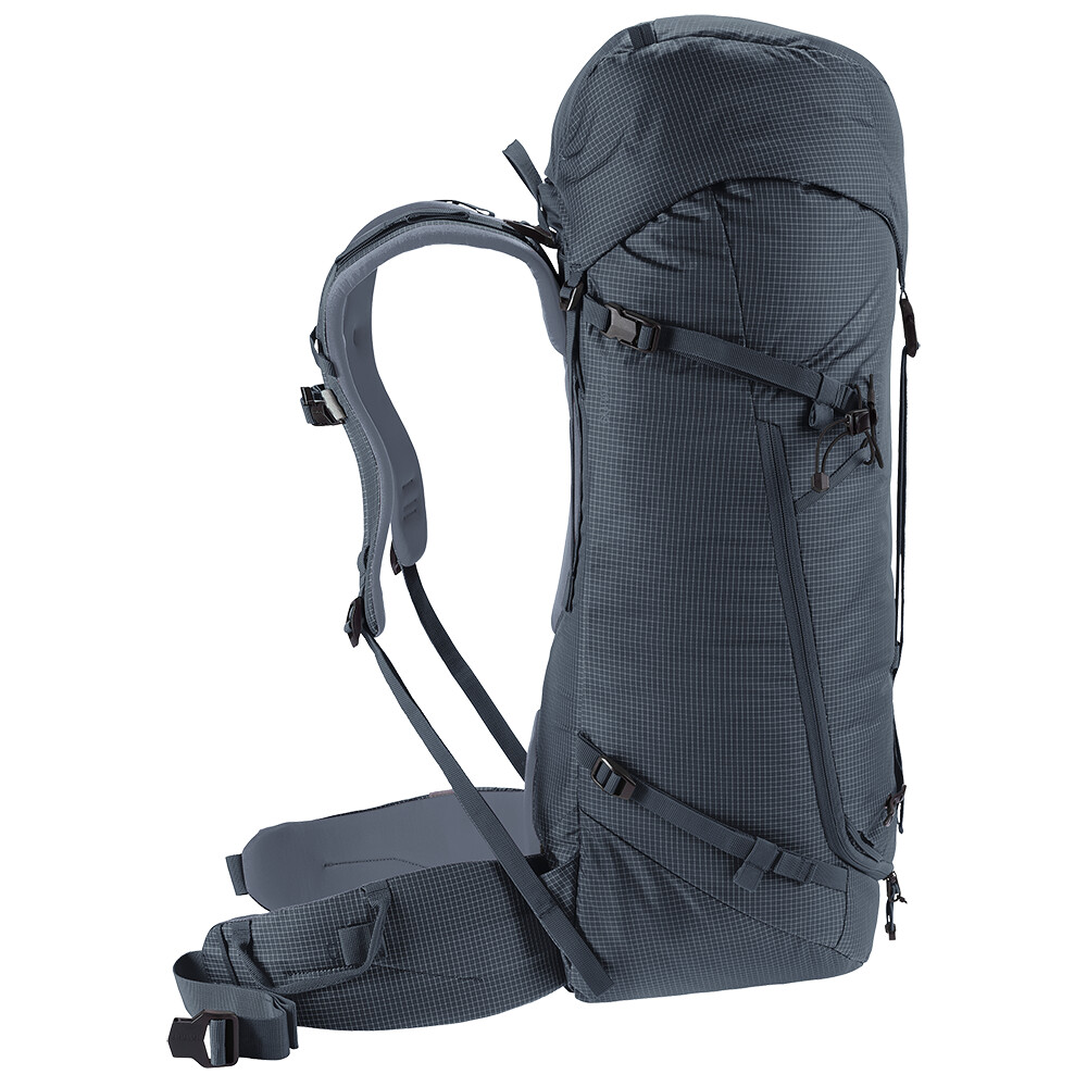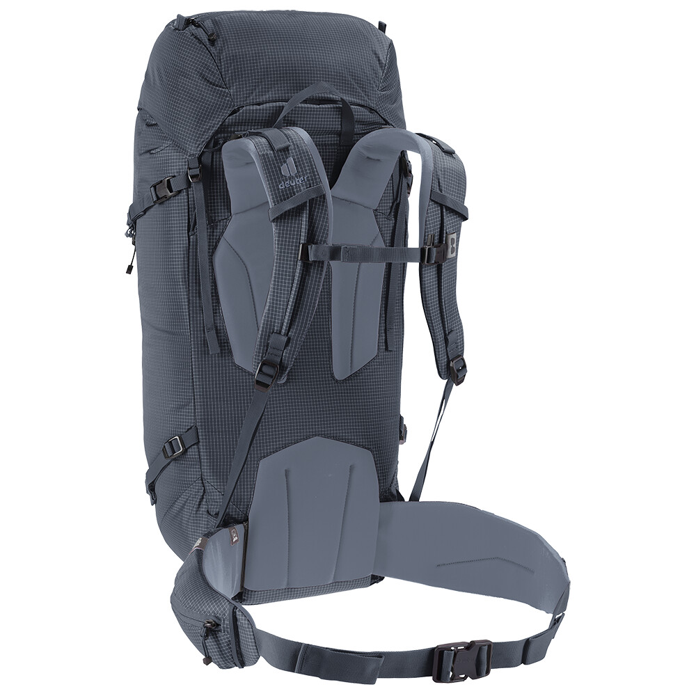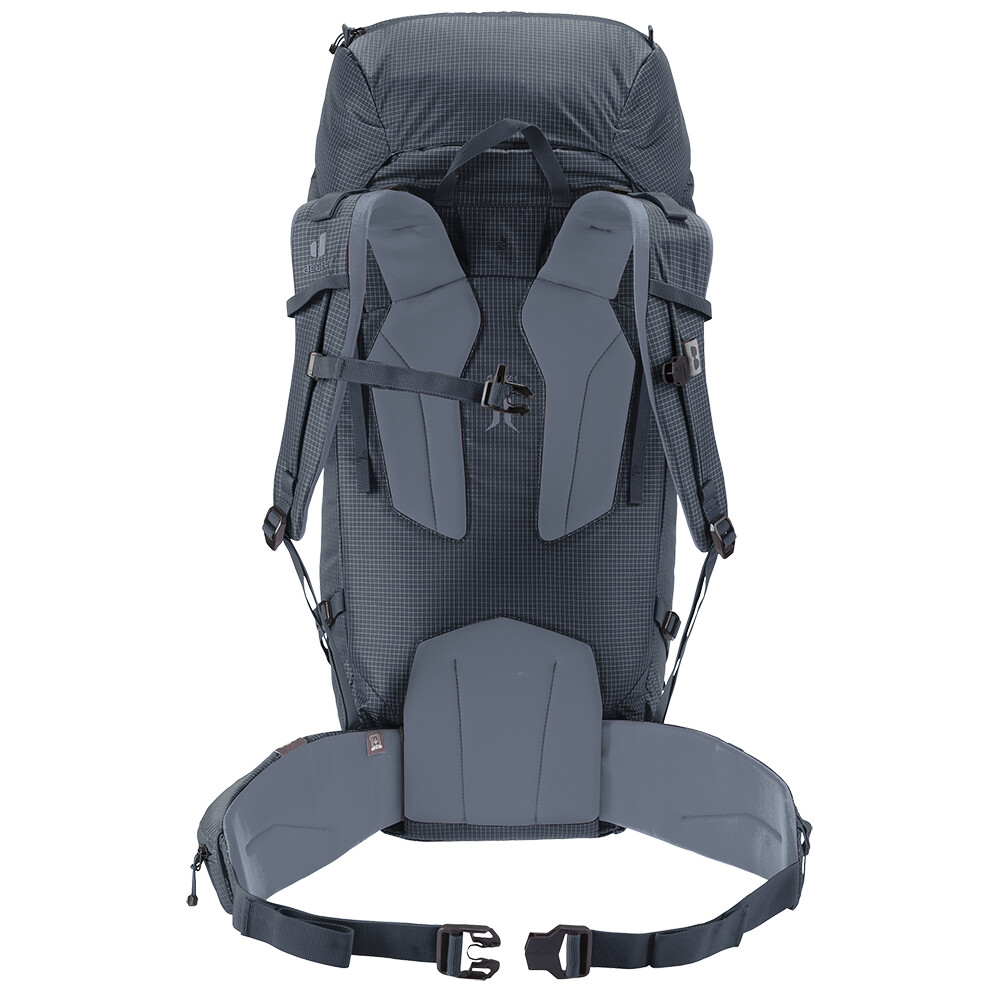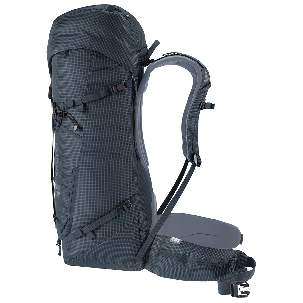 Časom overený batoh pre horolezcov a alpinistov Guide od spoločnosti deuter je ideálny batoh na prenášanie všetkého lezeckého vybavenia, cepínov, lana, prilby a dokonca ajlyží. Je strihaný tak, aby ste ho mohli nosiť na chrbte aj so sedákom a prilbou na hlave. Ak si potrebujete odľahčiť batoh na náročnú lezeckú výpravu, jednoducho z neho odoberte bedrový pás a vrchné veko. Batoh má tiež zips v tvare písmena J v prednej časti na rýchly prístup ku konkrétnemu vybaveniu. Praktickým prvkom sú bočné sťahovacie popruhy, ktoré umožňujú pripevnenie penového matraca.