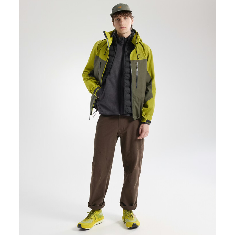 Teplá, mäkká a recyklovaná... to je tkanina Alpenex II. Na rukáve má laminované vrecko na zips s logom Arc´teryx a ruky si môžete zahriať v predných vreckách na zips.