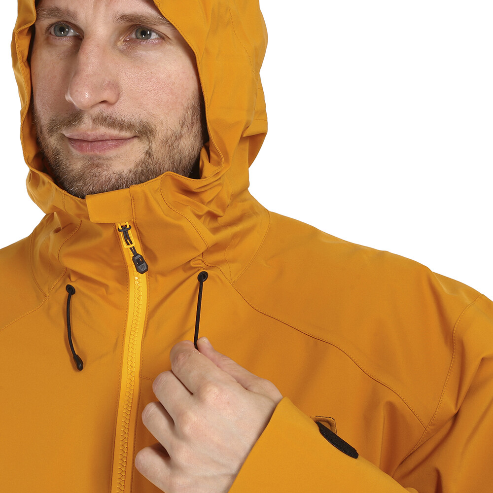 Ľahký trojvrstvový membránový materiál poskytne dokonalú ochranu proti vode a umožní vynikajúcu priedušnosť. Mierne voľnejší strih zaistí príjemné pohodlie. Zipsové vetranie v podpazuší umožní reguláciu teploty. Anatomicky tvarovaný golier ochráni tvár za veterného počasia. Samozrejmosťou je nastaviteľná kapucňa. Dostatok vreciek pojme všetko potrebné.