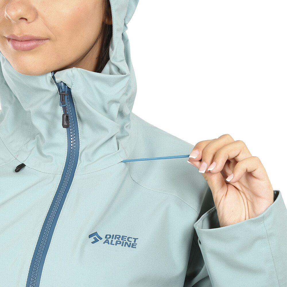 Dámska nepremokavá vetruvzdorná bunda z tvrdého škrupinového materiálu s nízkou hmotnosťou ako záložná bunda. Novinkou je najtenší 3-vrstvový materiál s membránou Pertex, kde vrchný materiál je 100 % recyklovaný.