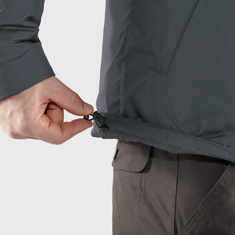 Ľahká, univerzálna páperová bunda s kapucňou od spoločnosti Fjällräven vhodná do zimného počasia. Oblasť ramien je vystužená syntetickým polstrovaním a kapucňa je nastaviteľná.