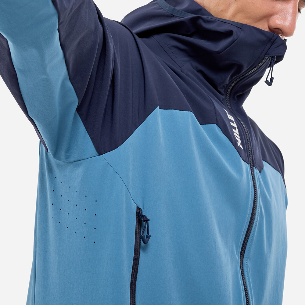 Pánska softshellová bunda KAMET XCS LIGHT HOODIE s kapucňou od firmy Millet je všestranným spoločníkom na celoročné horské aktivity - od skialpinizmu až po skialpinizmus.