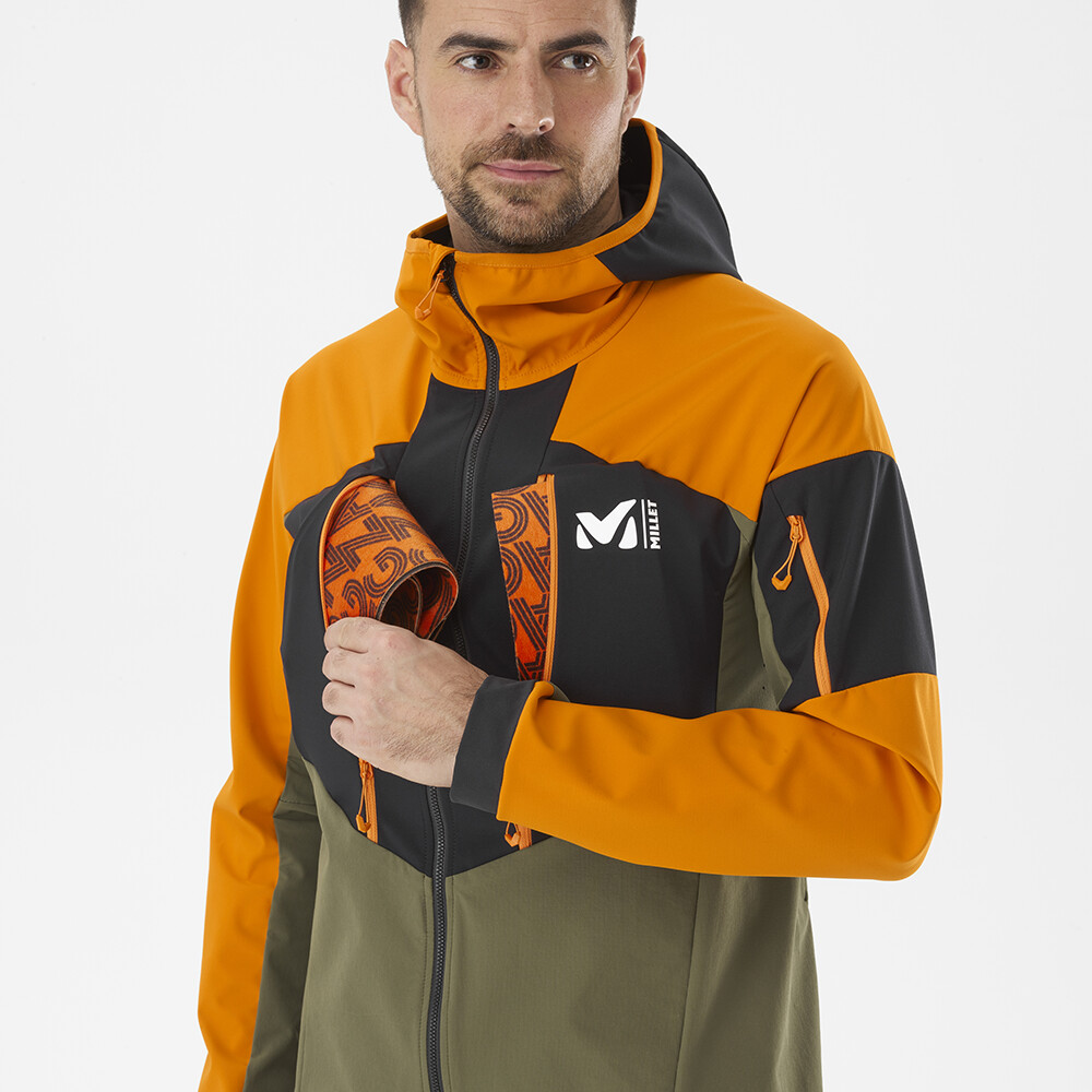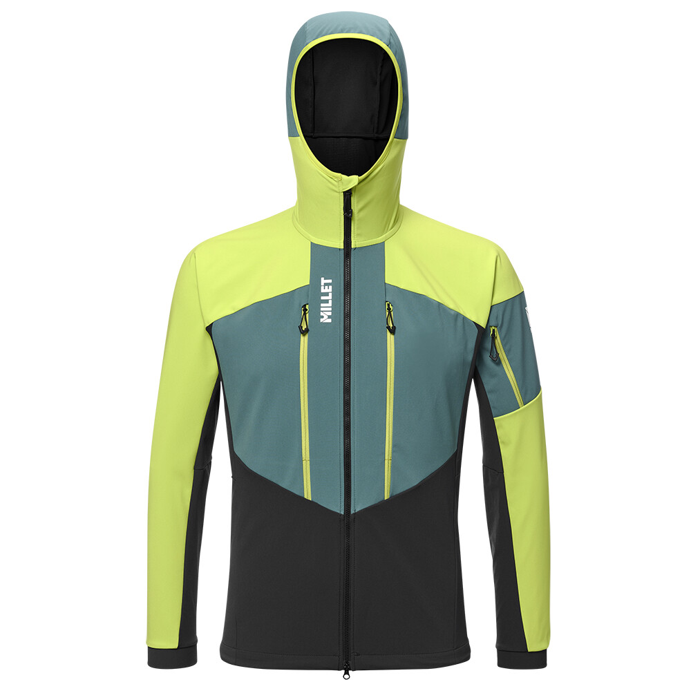 Ľahká pánska softshellová bunda Millet vám poskytne ochranu a voľnosť pohybu. Bunda má priliehavú kapucňu, perforované vetranie, vrecká na zips, elastické lemy rukávov a spodnú manžetu.