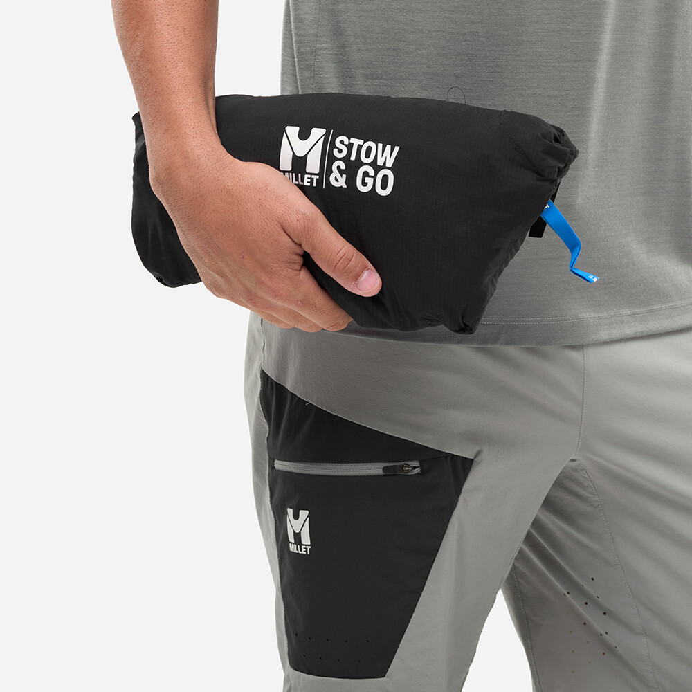 Bunda je vyrobená výhradne z recyklovaného polyesteru, je elastická a prispôsobí sa vašim pohybom pri chôdzi a stúpaní. Elastický lem dobre drží na mieste a zvyšuje pohodlie počas aktívneho nosenia. Praktickým bonusom je možnosť zbalenia bundy do jedného z dvoch náprsných vreciek na zips, čo z nej robí skladný a univerzálny kúsok na horské túry a každodenné outdoorové aktivity.