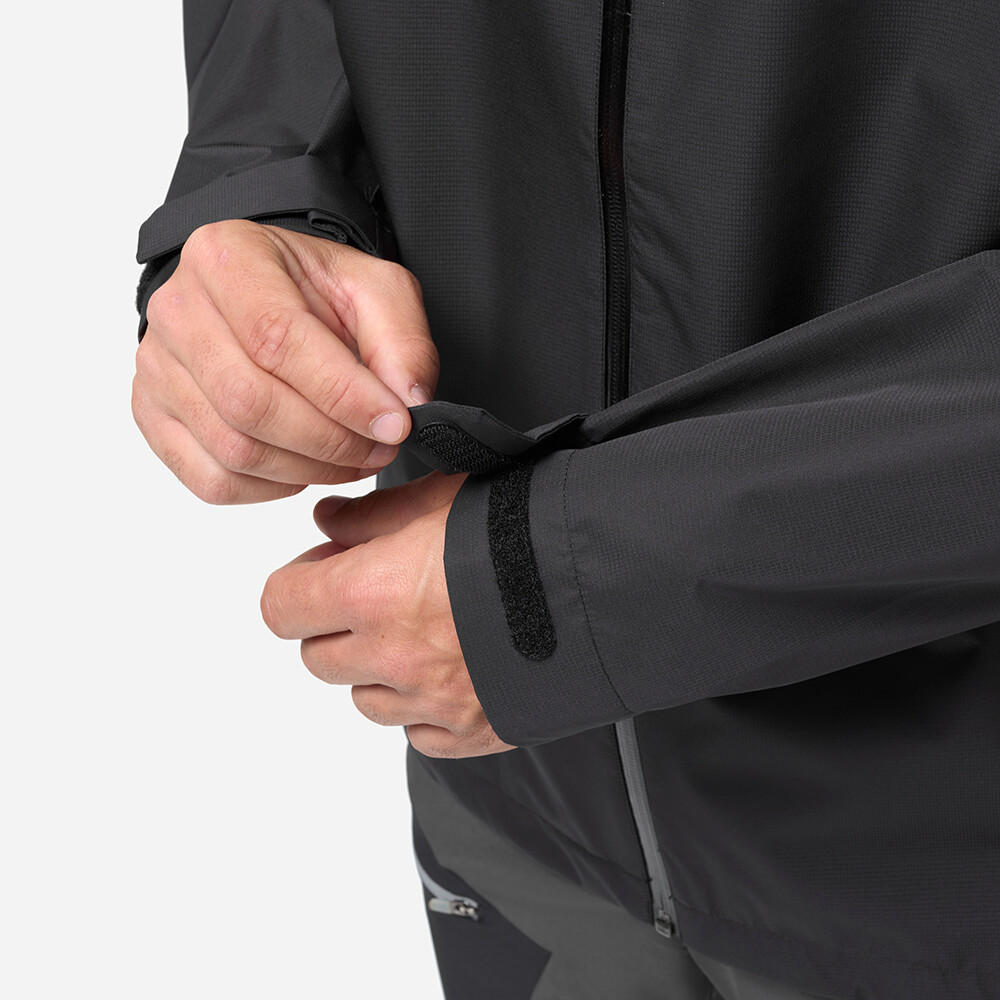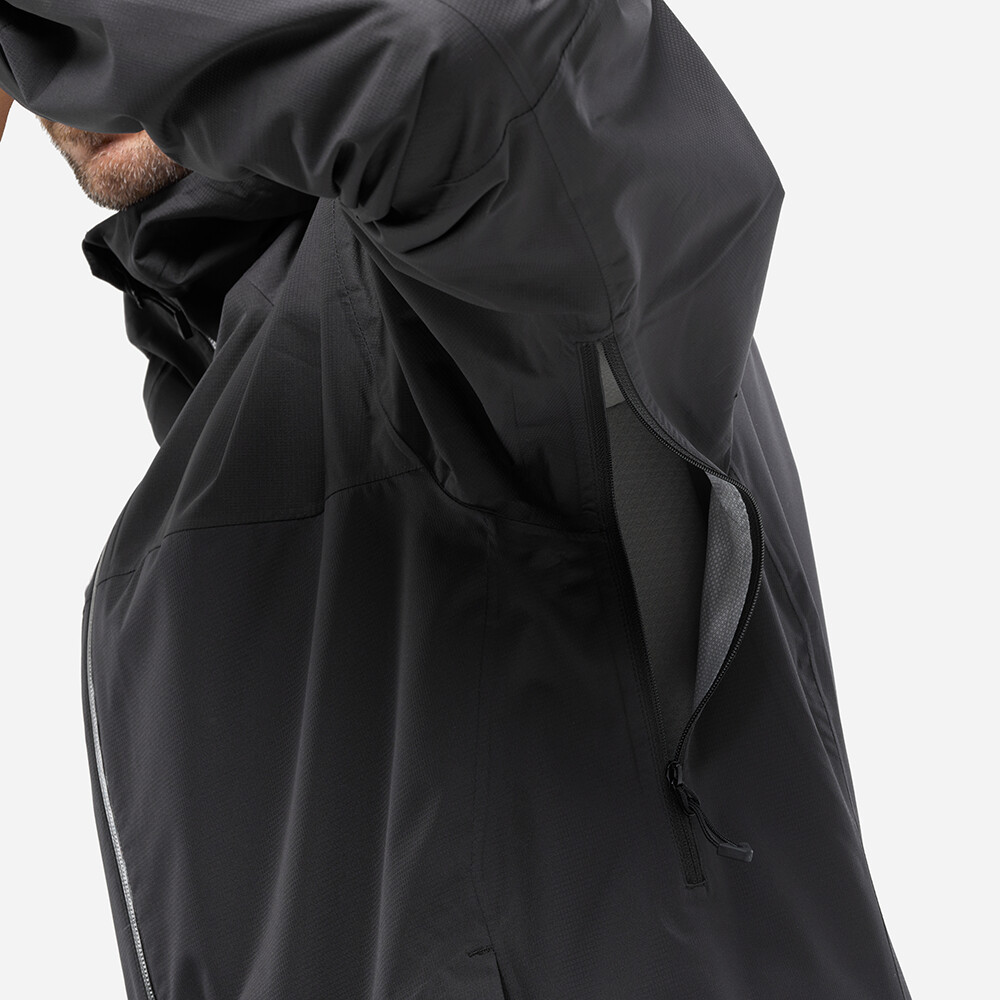 Pánska nepremokavá a vetruodolná bunda s nastaviteľnou kapucňou na ochranu pred dažďom. Vetranie na zips v podpazuší umožňuje reguláciu teploty počas náročnejších aktivít. Manžety rukávov sú nastaviteľné pomocou suchého zipsu.