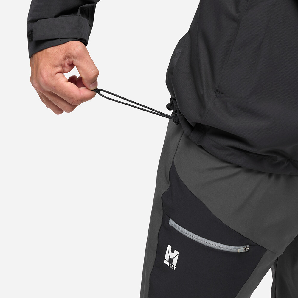 Pánska nepremokavá bunda Kamet GTX Jacket od spoločnosti Millet je technická vrstva určená na použitie v náročných podmienkach. Je kompatibilná so sedákom, lezeckou prilbou a je strihaná z odolného materiálu.