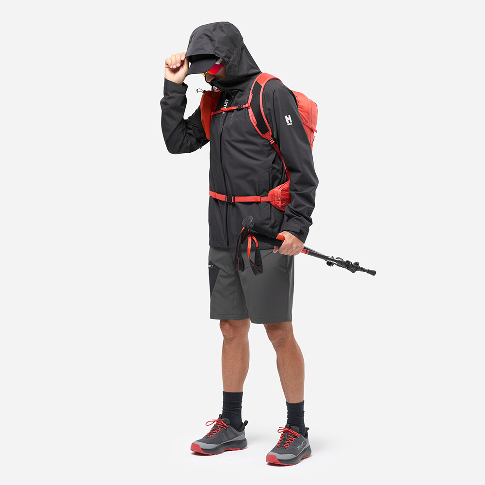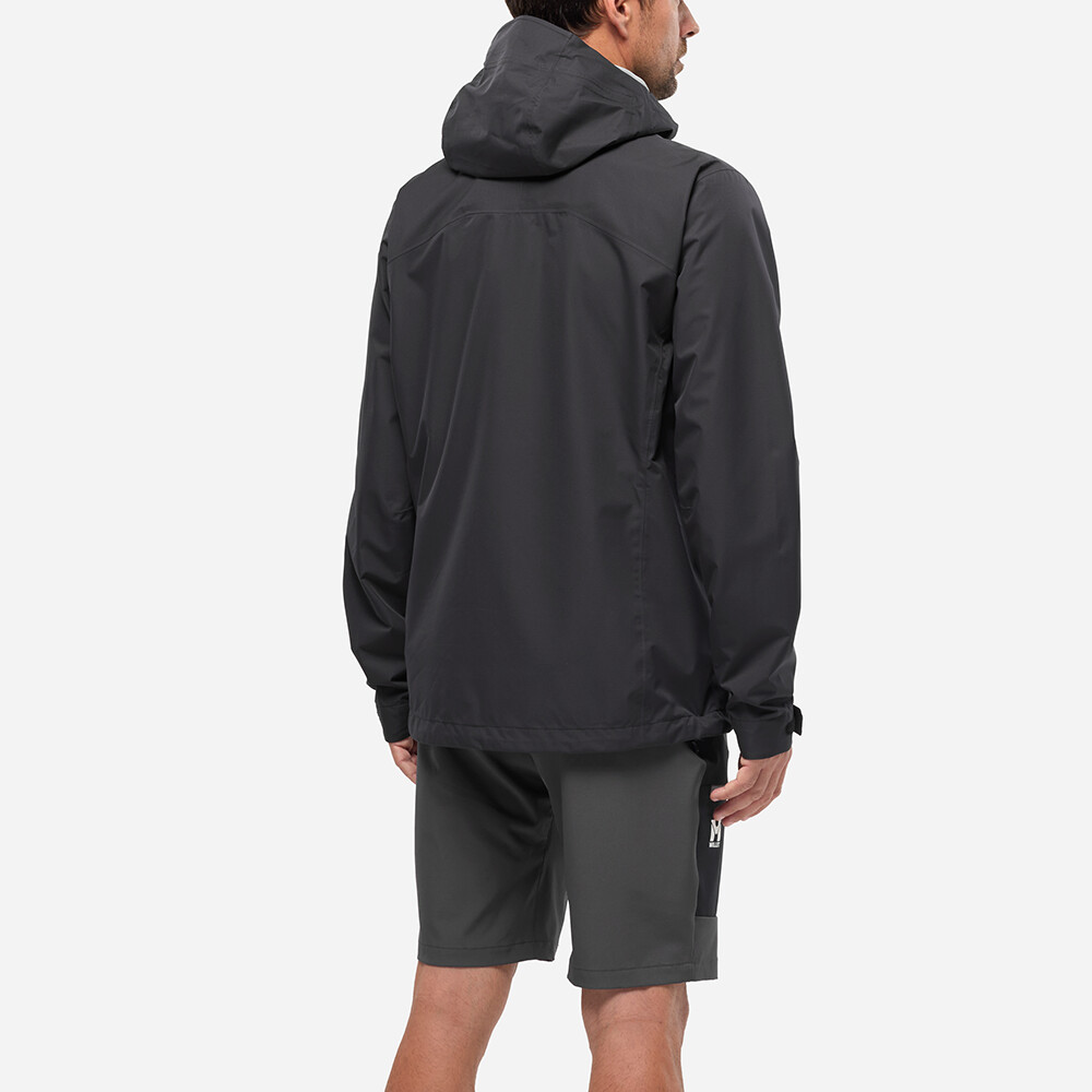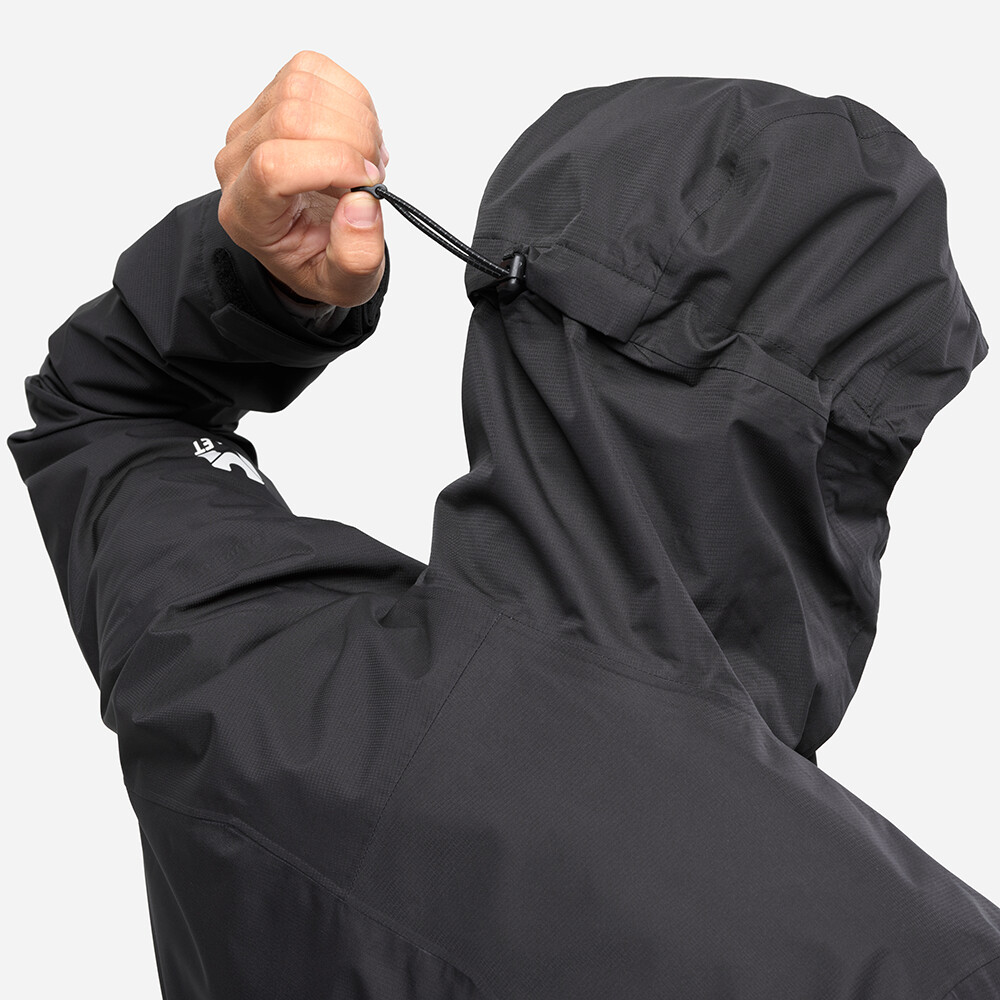Bunda je vyrobená z recyklovaného polyesteru s ripstopovou úpravou a membránou 10K/10K DRYEDGE™, ktorá poskytuje odolnosť proti zrážkam aj dobrý odvod vlhkosti. Vďaka 2,5-vrstvovej konštrukcii bunda ponúka voľnosť pohybu a nízku hmotnosť. Vetracie zipsy v podpazuší umožňujú reguláciu teploty pri vyššej záťaži, zatiaľ čo nastaviteľná pevná kapucňa, ochranný golier a sťahovací lem zvyšujú ochranu pred nepriazňou počasia. Dve vrecká na ruky so zipsom udržia základné veci bezpečne po ruke počas každej túry.