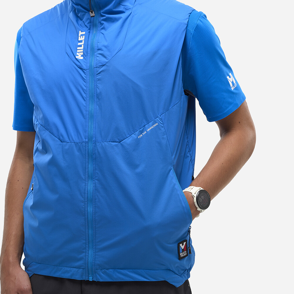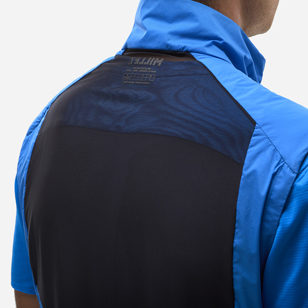 Vesta poslúži ako izolácia, z prednej strany je zateplená vlnou (45 g). Vonkajší materiál je z ľahkej vodoodpudivej strečovej tkaniny Toray®. Bunda má zadnú časť z elastickej sieťoviny, aby sa dala pohodlne obliecť cez batoh. Bundu jednoducho zocvaknete s vestou. Raglánový strih rukávov umožní pohodlný a voľný pohyb paží.