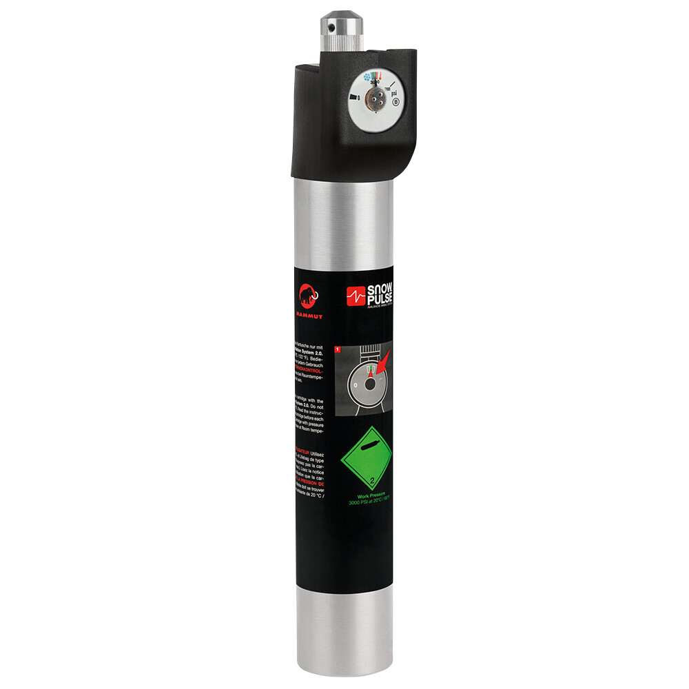Cartridge Refillable 207 Bar Alu empty je tlaková fľaša pre lavínové batohy Mammut. Fľaša je kompatibilná so systémom Removable Airbag System (R.A.S.) a Protection Airbag System. Fľaša sa dodáva prázdna a možno ju naplniť stlačeným vzduchom, napr. z potápačskej fľaše. Na opätovné naplnenie je potrebná súprava Mammut Cartridge Refill Kit a zdroj stlačeného vzduchu.