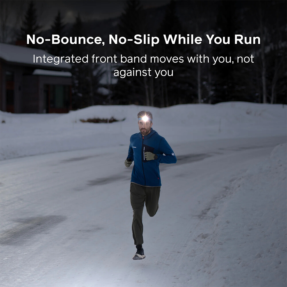 Bežecká čelovka od značky BioLite, o ktorej nebudete vôbec vedieť, že ju máte na hlave. Váži iba 78g, je nabíjacia a batéria je umiestnená v zadnej časti popruhu. Veľkou výhodou je ultraľahká predná časť, ktorá má hrúbku iba 9mm. Čelovka je perfektne vyvážená a dokonale sedí na hlave. Pri behu neposkakuje a neschádza. Ponúka niekoľko režimov svietenia, svetlo rozptýlené aj kužeľ diaľkového svetla s dosvitom až na 90 m. Všetko s možnosťou nastavenia intenzity. Zadná časť je opatrená červenou blikačkou pre vašu väčšiu bezpečnosť.