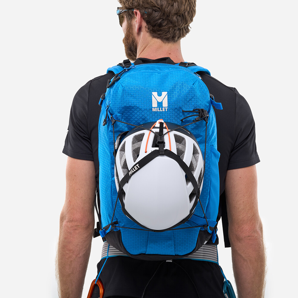 Jednoduchý systém na pripevnenie prilby k batohu v ultraľahkej verzii. V porovnaní s klasickým držiakom na prilbu od spoločnosti Millet má táto verzia polovičnú hmotnosť (len 30 g). Držiak sa ľahko pripevní pomocou štyroch háčikov a sťahovacích šnúrok na akýkoľvek batoh, ktorý má na to v prednej časti pútka. Veľkosť je prispôsobená rôznym typom prilieb.