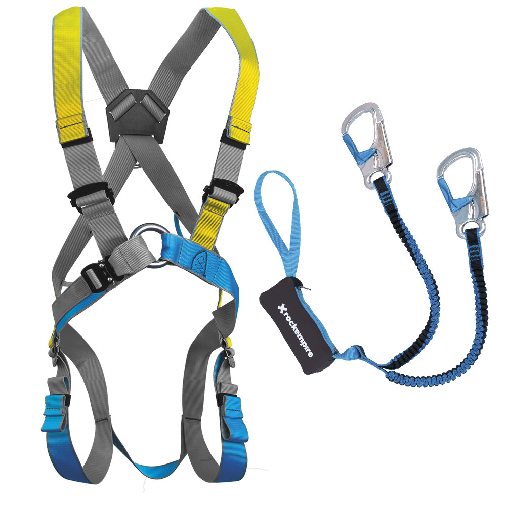 DynaGo Ronda Set značky Rock Empire, který obsahuje lehký celotělový úvazek Ronda Al Lock a tlumič pádů DynaGo .