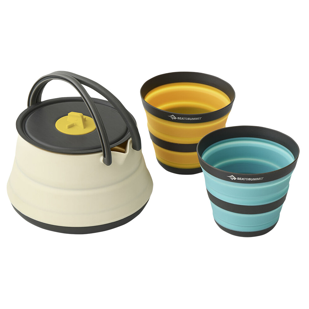 Sada na varenie pre dve osoby od značky Sea to Summit zo série ultraľahkého skladacieho silikónového riadu Frontier. Poteší všetkých priaznivcov cestovania naľahko a fanúšikov minimalistického vybavenia. Set obsahuje kanvicu s objemom 1.3 l a dva hrnčeky. Kanvica má dno vyrobené z eloxovaného hliníka, takže ju môžete bez problémov použiť na plynový turistický varič alebo elektrickú platničku. Môžete ju využiť na prípravu vody na horúce nápoje a sušenú stravu, ale funguje aj ako hrniec pre menšiu porciu vareného jedla. V zloženom stave vám celý set zaberie približne rovnako miesta v batohu, ako outdoorová powerbanka.