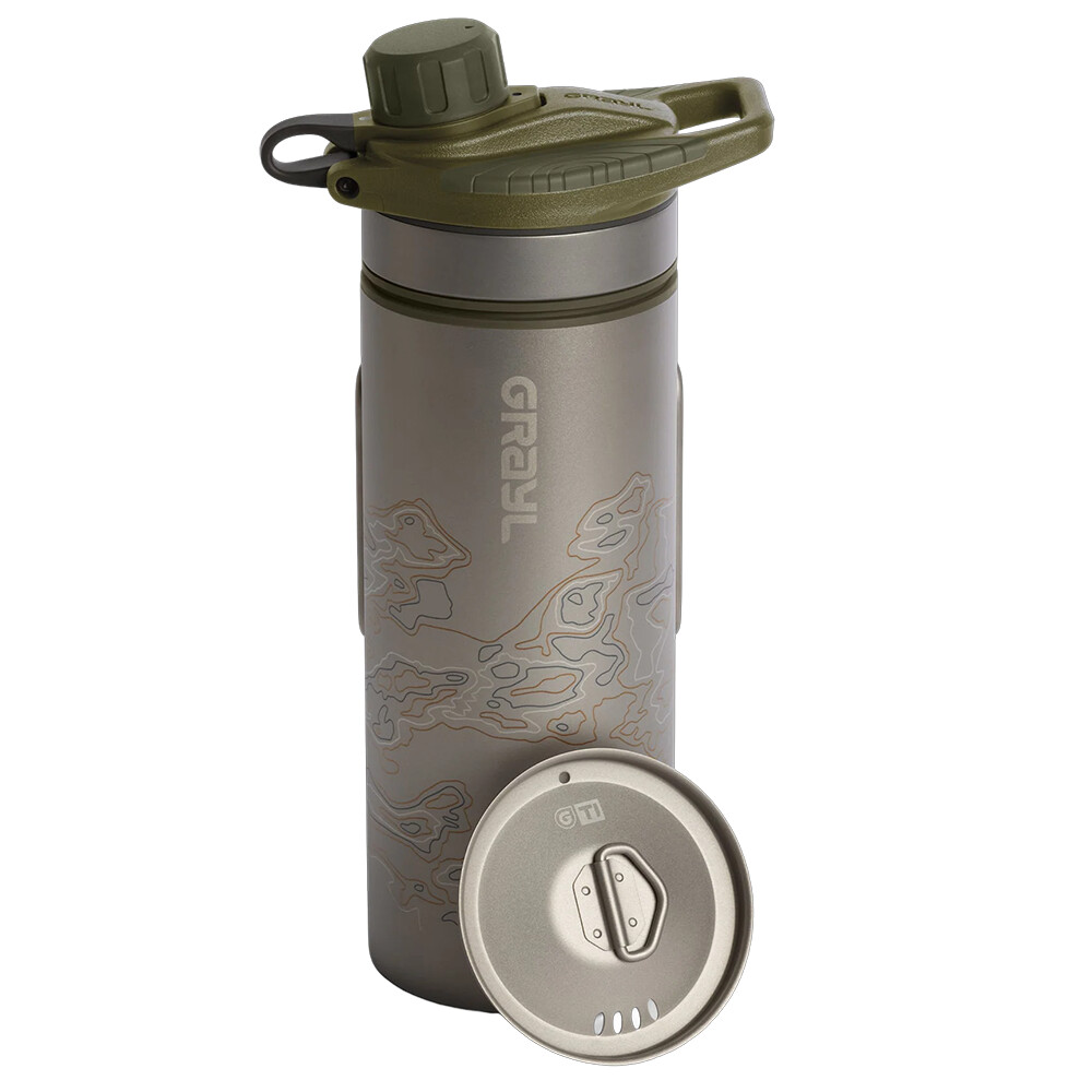 Jedinečná súprava filtračnej fľaše a nádoby na varenie od spoločnosti Grayl je neuveriteľne prenosné riešenie pre všetkých outdoorových nadšencov. Fľaša s objemom 700 ml má zabudovaný filter, takže stačí nabrať vodu, "pretlačiť" ju cez filter a môžete hneď piť. Súprava obsahuje aj nádobu na varenie vyrobenú z odolného a ľahkého titánu. Prefiltrovanú vodu tak môžete okamžite použiť na varenie vody na sušené jedlo, čaj alebo kávu. Nádoba je vhodná na rôzne typy turistických varičov, má sklopné rukoväte a veko s otvormi na nalievanie vody. Vďaka veľkosti, ktorá presne zodpovedá veľkosti filtračnej fľaše, máte kompaktne zabalenú celú súpravu na prípravu jedla a nápojov, ktorá sa zmestí do bočného vrecka každého batohu.