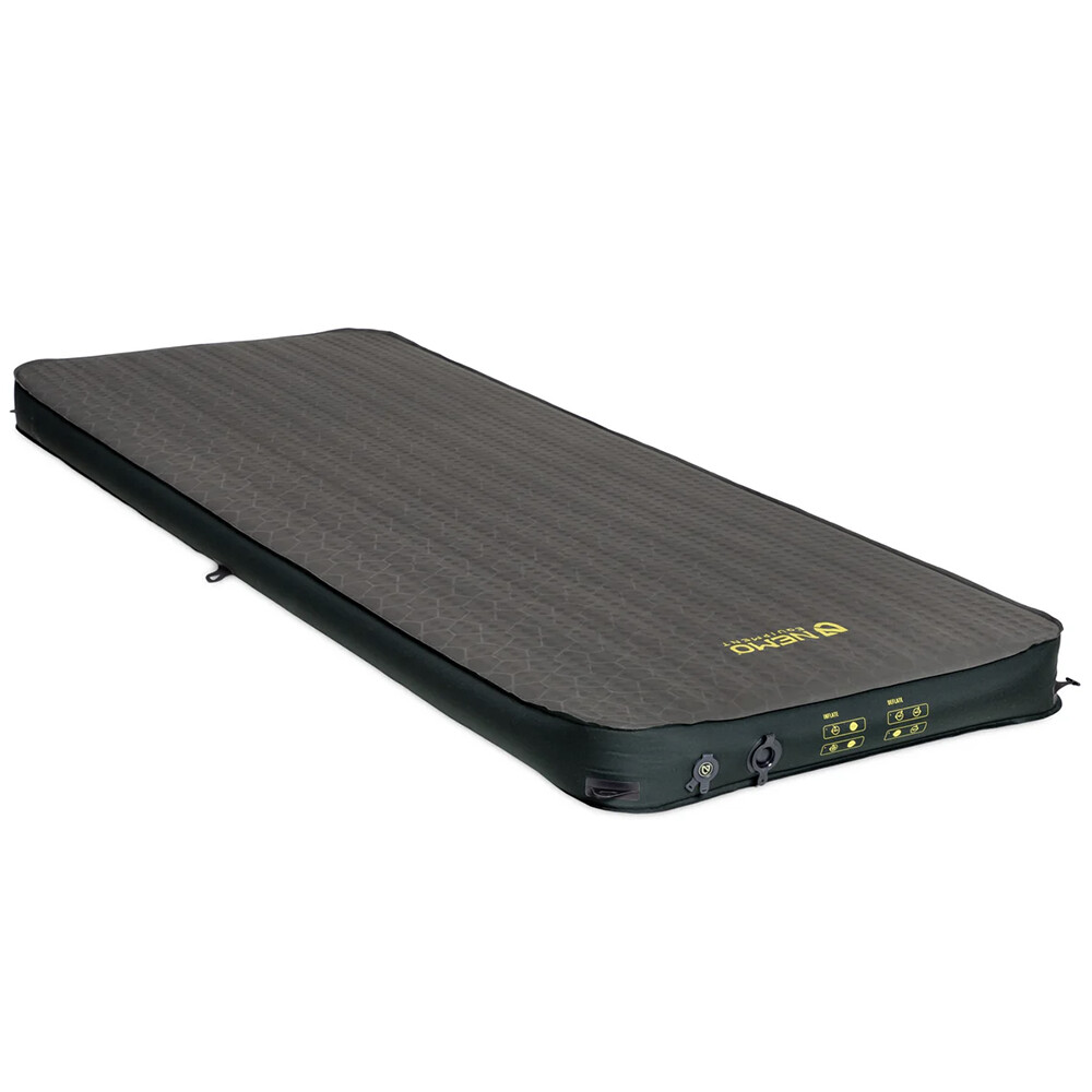 Vďaka matracu Roamer od spoločnosti Nemo je spanie v stane rovnako pohodlné ako vo vlastnej posteli doma. Vnútorné penové jadro s otvorenými pórmi zaisťuje, že sa matrac po vybalení rýchlo nafúkne a zároveň vám zaistí maximálne pohodlie. Vďaka hrúbke 10 cm sa nemusíte obávať ani spánku na boku alebo opretia sa o lakte pri odpočinku s knihou. Priložené vrecko s pumpou Vortex™ umožňuje rýchle a jednoduché nafúknutie matraca. Jeho použitím zabránite zbytočnému hromadeniu vlhkosti vo vnútri matraca. Vďaka jednosmernému vypúšťaciemu ventilu môžete matrac aj rýchlo a efektívne vypustiť, zbaliť a zabezpečiť pomocou sťahovacích popruhov.