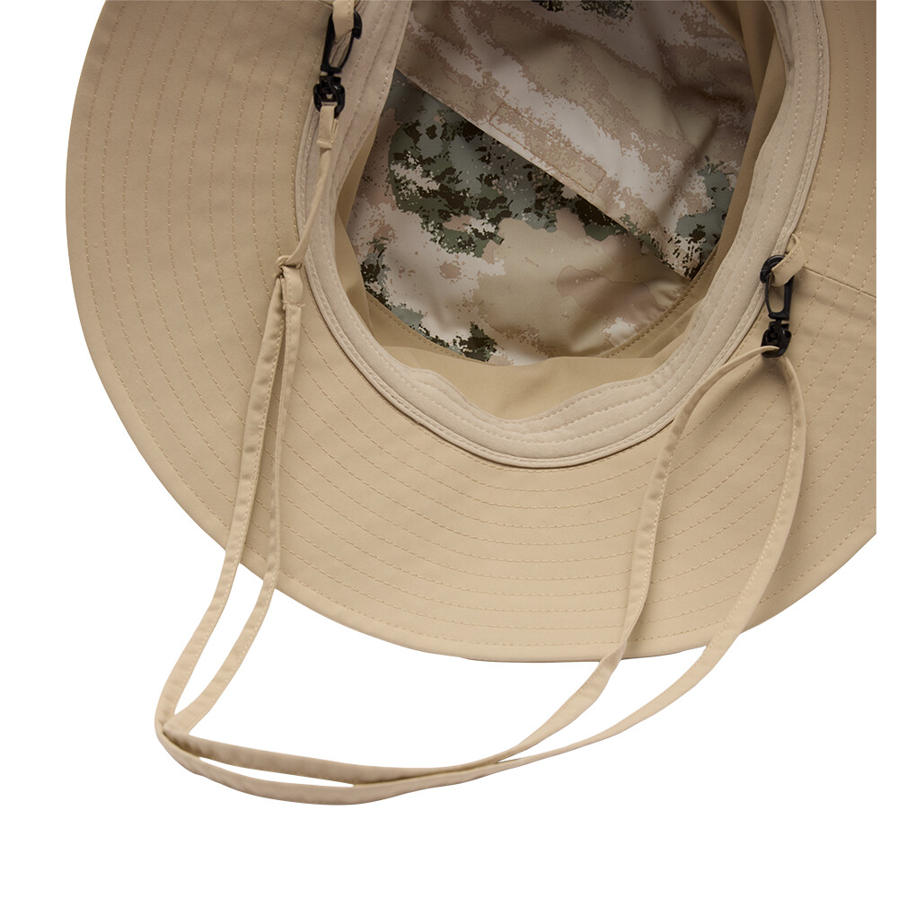 Klobúk sa dá zložiť do úhľadného tvaru a zavesiť na karabínu na batohu. Má povrchovú úpravu, ktorá odpudzuje vodu a prípadné nečistoty, chráni pred ultrafialovým žiarením a má chladivý účinok. To všetko vďaka pokročilej technológii. Krempa vám zatieni tvár a šnúrku pod bradou si môžete nastaviť podľa potreby, aby vám ju neukradol vietor.
