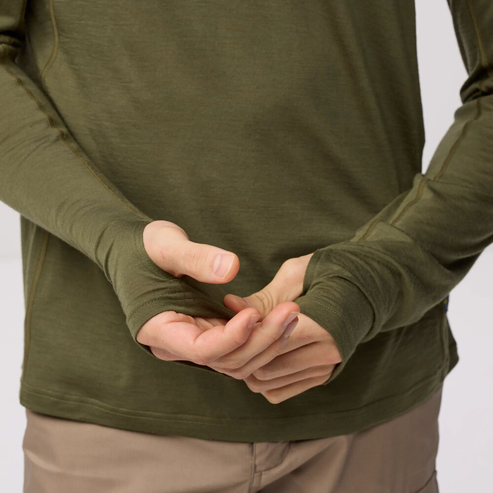 Ako už názov napovedá, táto mikina je čiastočne vyrobená z vlny. A je vyrobená priamo z merino vlny s certifikátom ZQ, ktorý zabezpečuje dobré životné podmienky zvierat. Druhým použitým materiálom je polyester. Táto kombinácia naznačuje, že mikina zvládne aj spotenejšie aktivity. Materiál je dobre priedušný, dokáže odvádzať pot a dobre schne. Kapucňa je pomerne priliehavá. Rukávy majú otvory na palce, takže v prípade potreby budete mať zápästia vždy schované. Celkový vzhľad tejto mikiny podčiarkuje malé vyšité logo na hrudi, ktoré nenápadne priznáva príslušnosť k značke Fjällräven.
