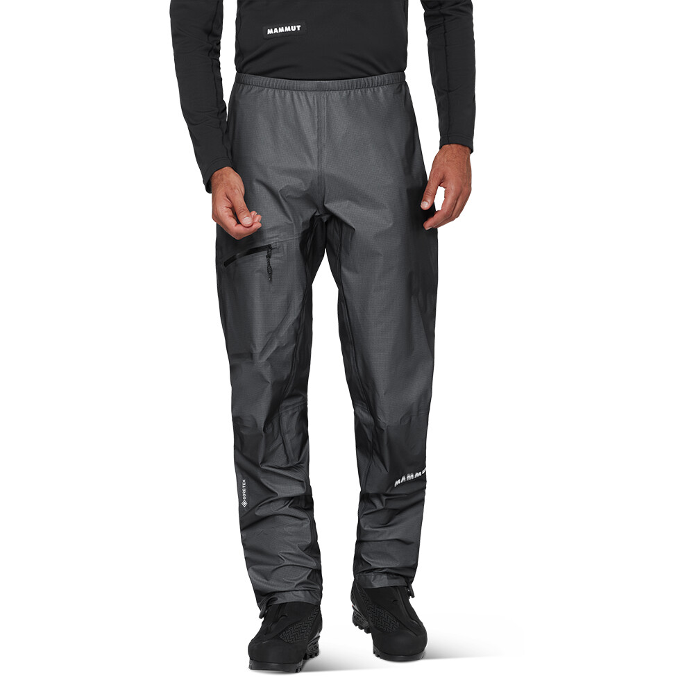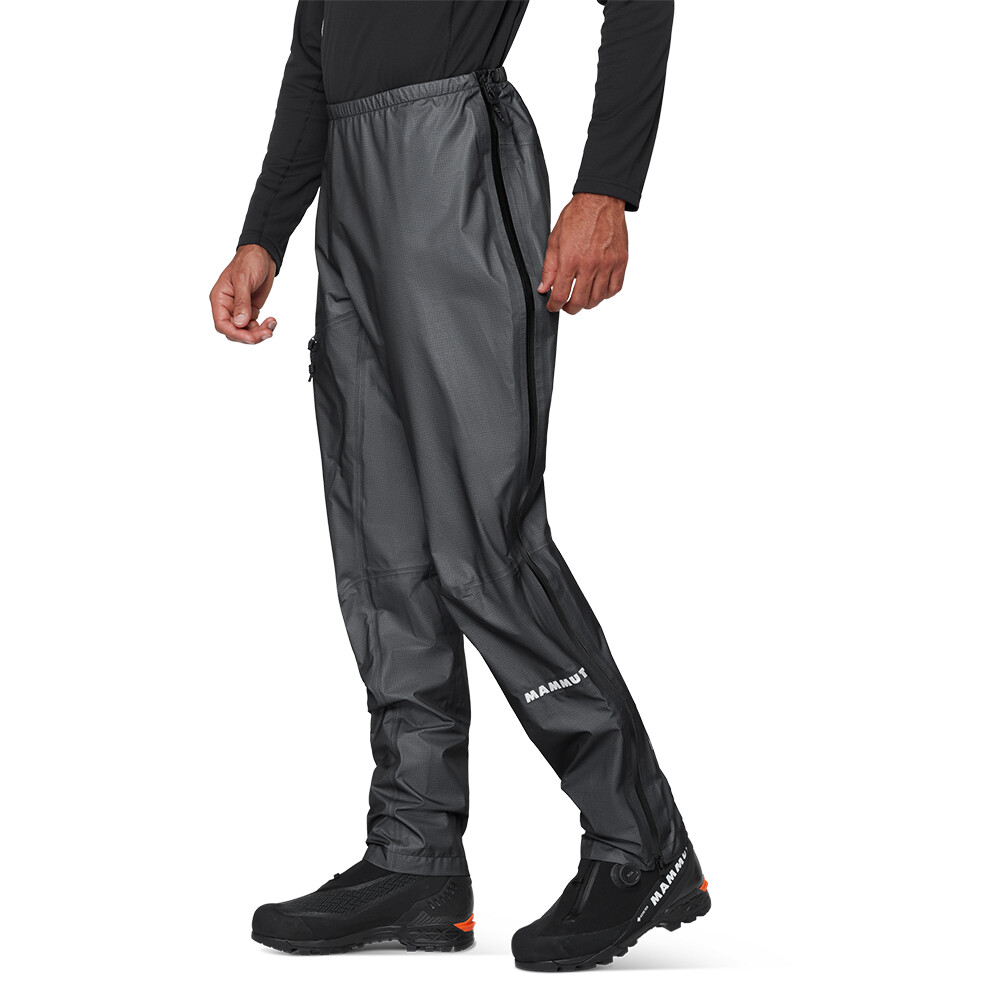 Pánske nohavice sú vyrobené z trojvrstvovej nepremokavej, ale zároveň priedušnej membrány Gore-Tex. Vrchná odolná tkanina je vyrobená z recyklovaného polyesteru. Bočné zipsy sú po celej dĺžke.