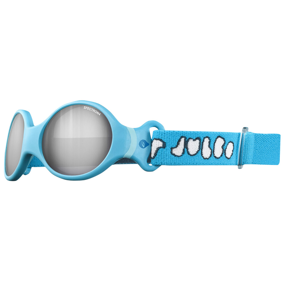 Slnečné okuliare Loop S od francúzskej spoločnosti Julbo určené pre deti od 0 do 18 mesiacov. Vďaka šošovkám Spectron 4 poskytujú maximálnu ochranu citlivých detských očí. Obojstranné rámy umožňujú ľubovoľné nasadenie a deti ho čoskoro zvládnu bez pomoci rodičov. Namiesto straníc majú okuliare nastaviteľný elastický pásik, ktorý udrží okuliare na hlave dieťaťa.