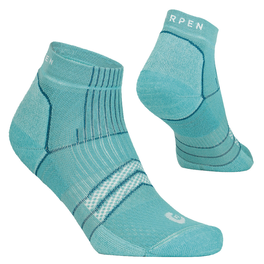 Tenké trekingové ponožky vyrobené z recyklovaného polyesteru z plastových fliaš. Táto priadza odvádza vlhkosť od pokožky trikrát rýchlejšie ako bežné vlákna. Polstrovanie po celej dĺžke chodidla chráni vaše nohy pred nárazmi.
