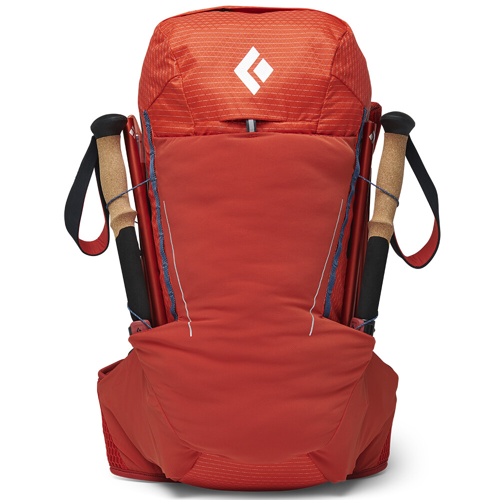 Nosný systém BD Continuous Fit Harness má bezšvovú konštrukciu a dokonale tak padne. Ku komfortnému noseniu prispeje aj priedušný chrbtový panel odvádzajúci vlhkosť, či kompresný systém, ktorým ľahko upravíte objem batohu, keď ho celý nenaplníte.