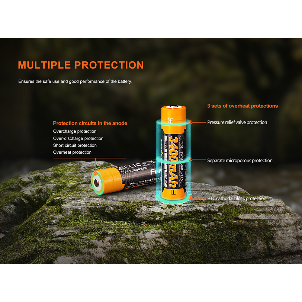 Vysokokapacitná dobíjacia batéria pre čelové svietidlá Fenix. Má kapacitu 4000 mAh a ponúka tak najvyššiu reálnu kapacitu na trhu. Článok netrpí pamäťovým efektom ani samovybíjaním. Vďaka pomeru veľkosti a hmotnosti ide o vysoko efektívny spôsob uchovávania energie. Nabíja sa pomocou nabíjačky, ktorá sa predáva samostatne.