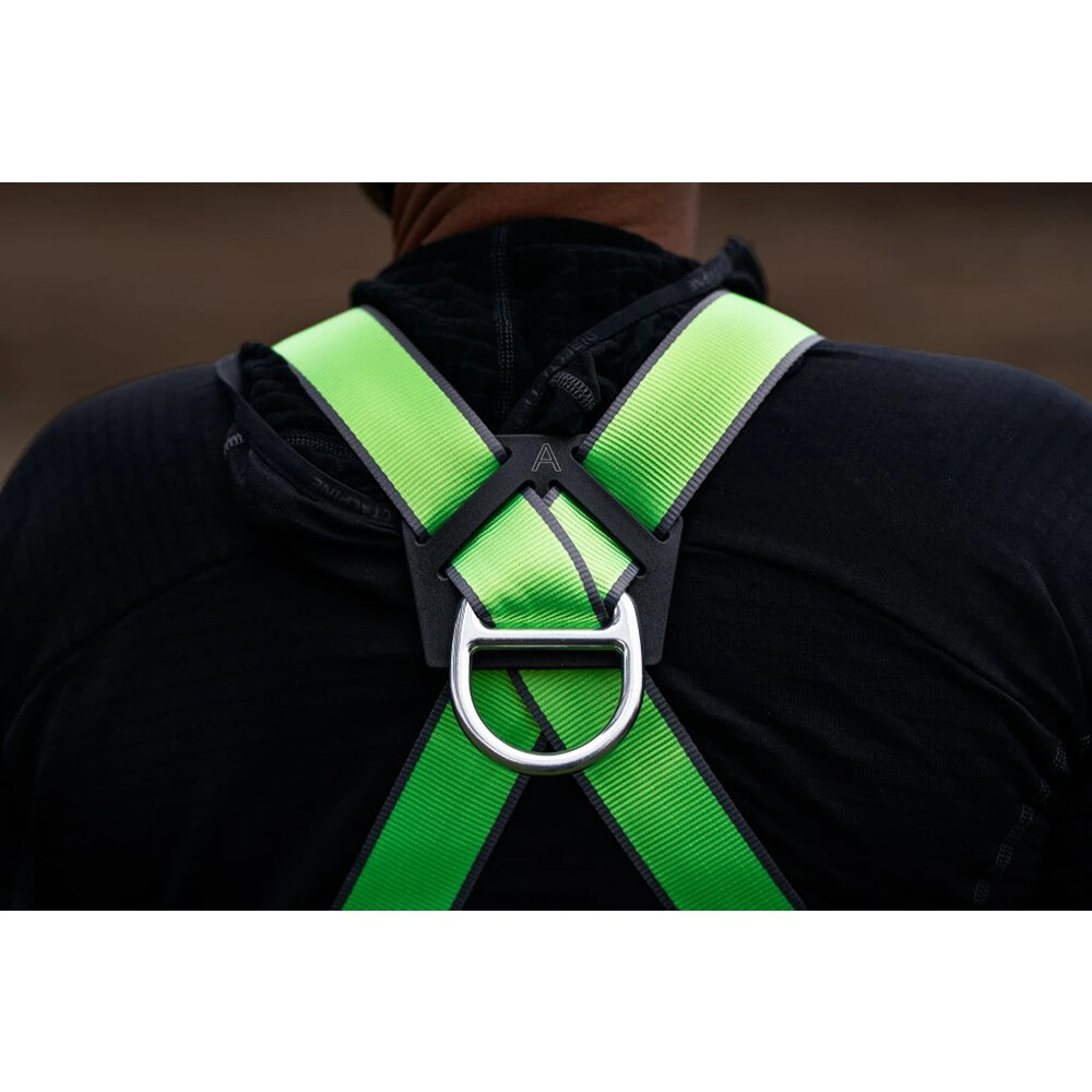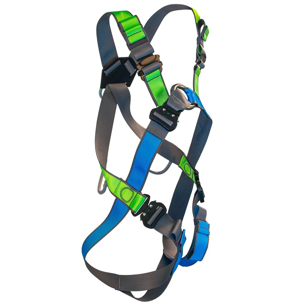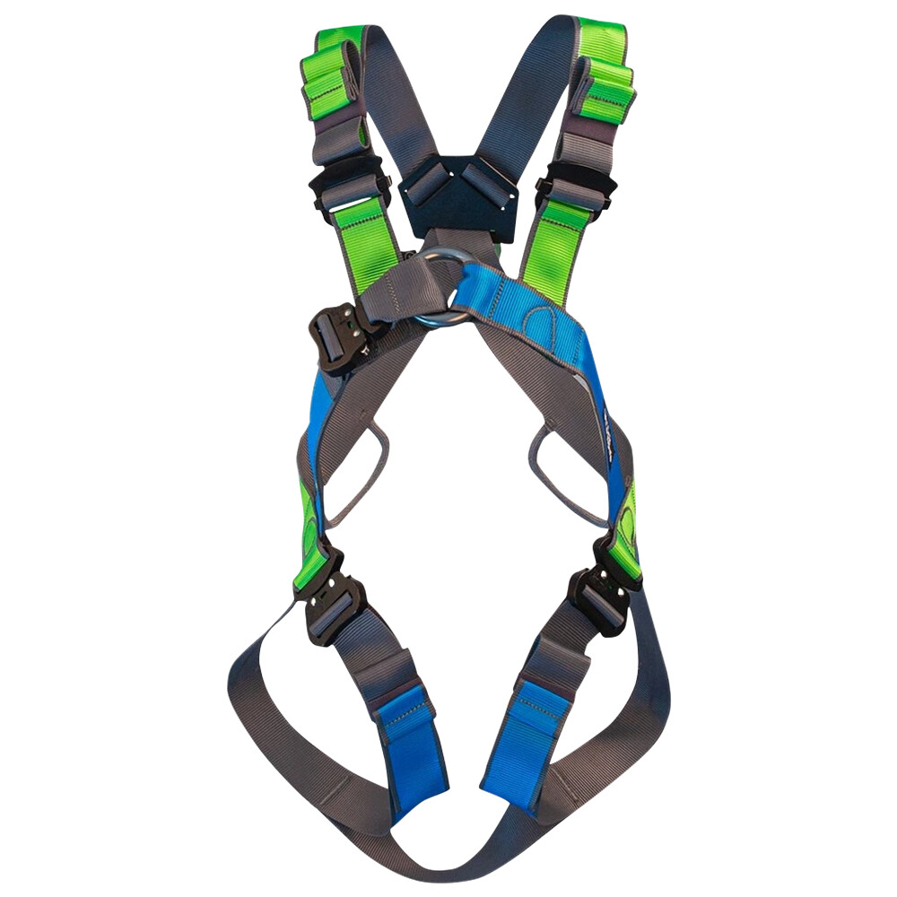 Univerzální celotělový postroj s kovovou rychlosponou a připojovacími body z kovu.