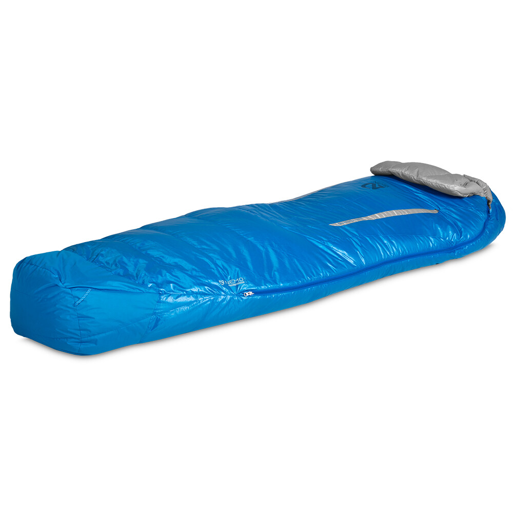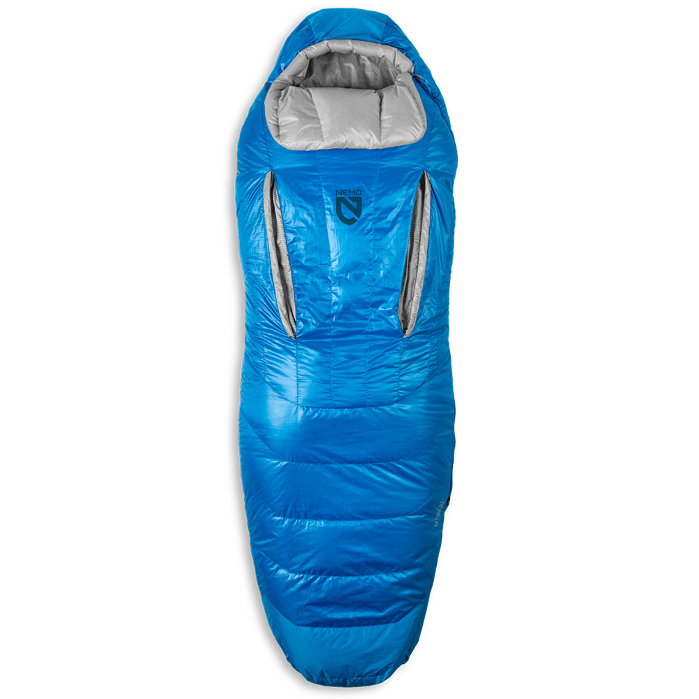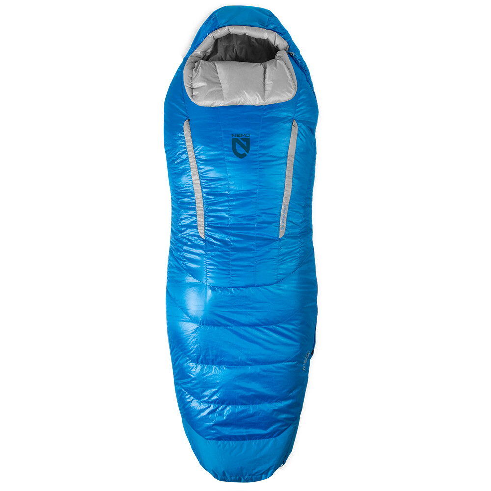 Třísezónní spací pytel Disco od značky Nemo je určený pro vícedenní treking a má hned několik zajímavostí. Po náročném dni na stezce nabízí komfortní prostor pro spánek na boku, díky svému speciálnímu střihu ve tvaru lžíce. To znamená, že je více rozšířený v místě loktů a kolen. Pro regulaci teploty slouží dva otvory v horní části, opatřené vnitřním a vnějším zipem, a mezivrstvou zabraňující průvanu. Vnější límec zabraňuje pronikání chladu kolem krku, příjemně hřeje a pro více tepla ho můžete obrátit "dovnitř" spacího pytle. Peří je ošetřené DWR úpravou, nenavlhne a spacák sbalený v kompresním obalu se výborně vejde i do menšího turistického batohu.