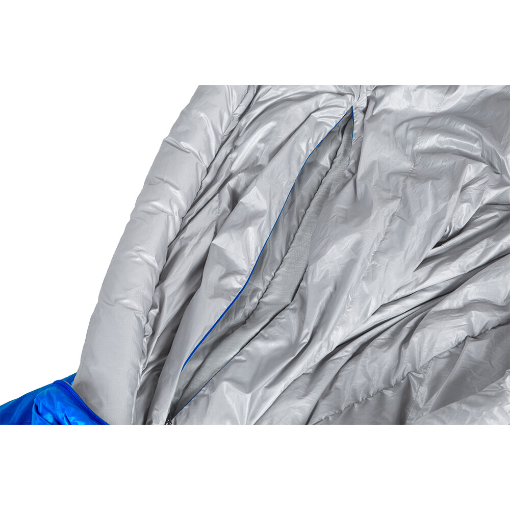 Spací vak z páperia na zimné použitie. Má dva vetracie otvory, kapucňu so sťahovacou šnúrkou chrániacu celú tvár a vonkajšiu úpravu DWR. Plus vrstva syntetickej výplne v časti pre nohy, ktorá ich pomáha udržať v teple.