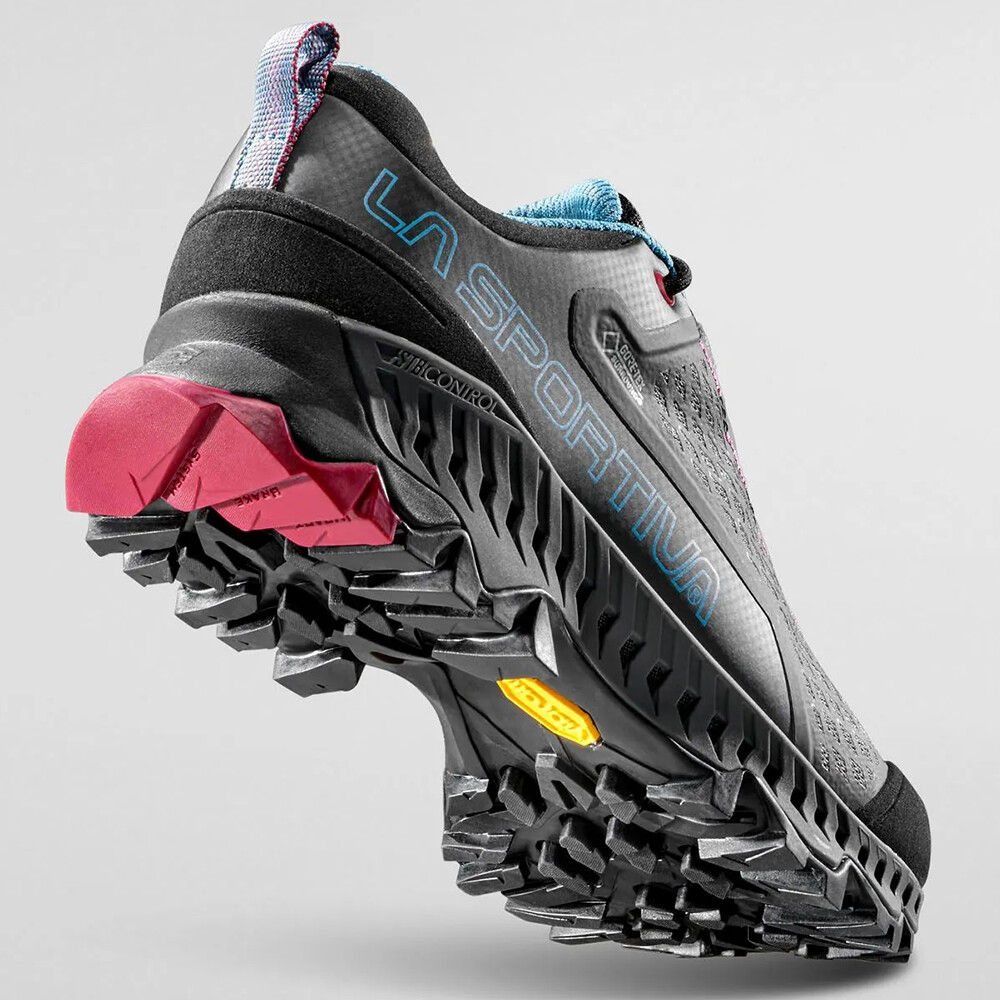 Dámske topánky Spire GTX od talianskej značky La Sportiva sú ľahké turistické topánky, ktoré udržia vaše nohy pekne v suchu. Vďaka jedinečnej konštrukcii Gore-Tex® Surround™ spoľahlivo zabraňujú prenikaniu vlhkosti zvonku a zároveň umožňujú vašim nohám dýchať. Táto patentovaná technológia umožňuje únik vlhkosti a tepla cez membránu pod chodidlom a následne von z topánky cez bočné vetracie otvory.