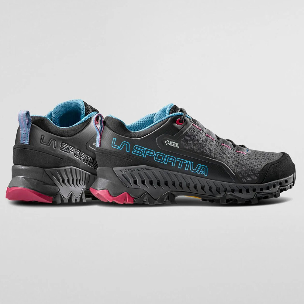Dámske topánky Spire GTX od talianskej značky La Sportiva sú ľahké turistické topánky, ktoré udržia vaše nohy pekne v suchu. Vďaka jedinečnej konštrukcii Gore-Tex® Surround™ spoľahlivo zabraňujú prenikaniu vlhkosti zvonku a zároveň umožňujú vašim nohám dýchať. Táto patentovaná technológia umožňuje únik vlhkosti a tepla cez membránu pod chodidlom a následne von z topánky cez bočné vetracie otvory.