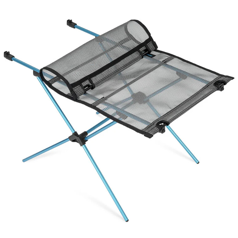 Vydajte sa na kempovanie, stanovanie alebo piknik do prírody štýlovo so skladacím stolom od spoločnosti Helinox. Vďaka jeho neuveriteľne nízkej hmotnosti a malým rozmerom v zloženom stave ho ľahko uložíte do batohu alebo tašky na bicykel. Konštrukcia je vyrobená z odolnej hliníkovej zliatiny DAC a doska stola je z nového materiálu GhostGrid™ (priesvitná monofilová sieťovina). Hoci je vyrobený z ultraľahkých materiálov, má nosnosť až 10 kg. V kombinácii s kempingovou stoličkou Chair Zero LT sa môžete vydať na dobrodružstvo s pohodlným nábytkom s hmotnosťou pod 1 kg.