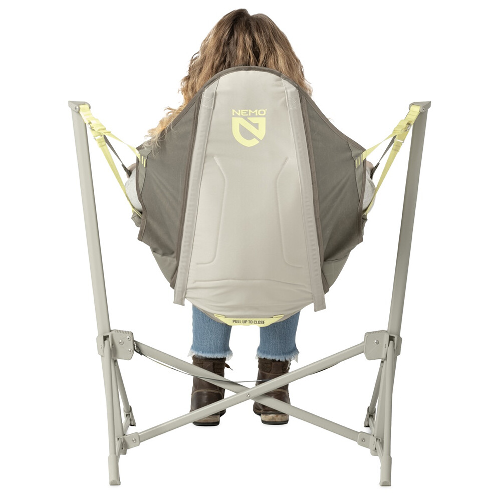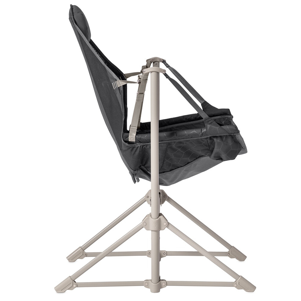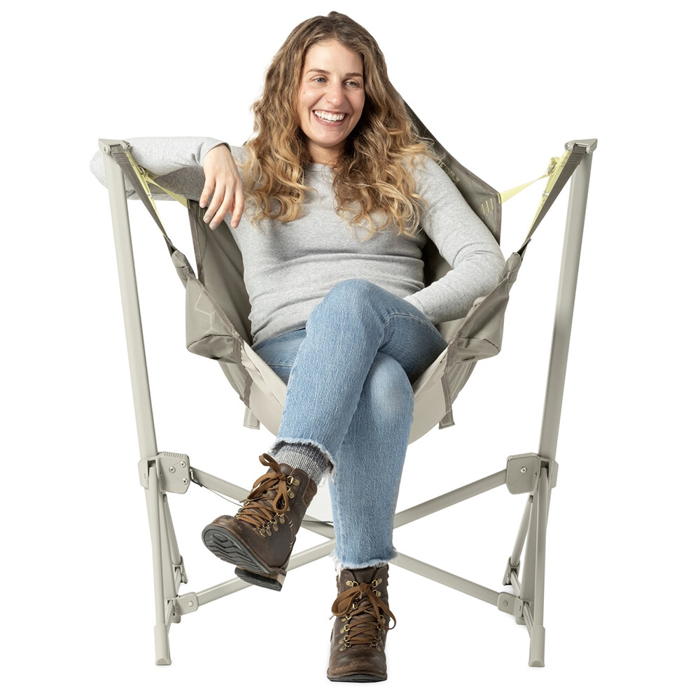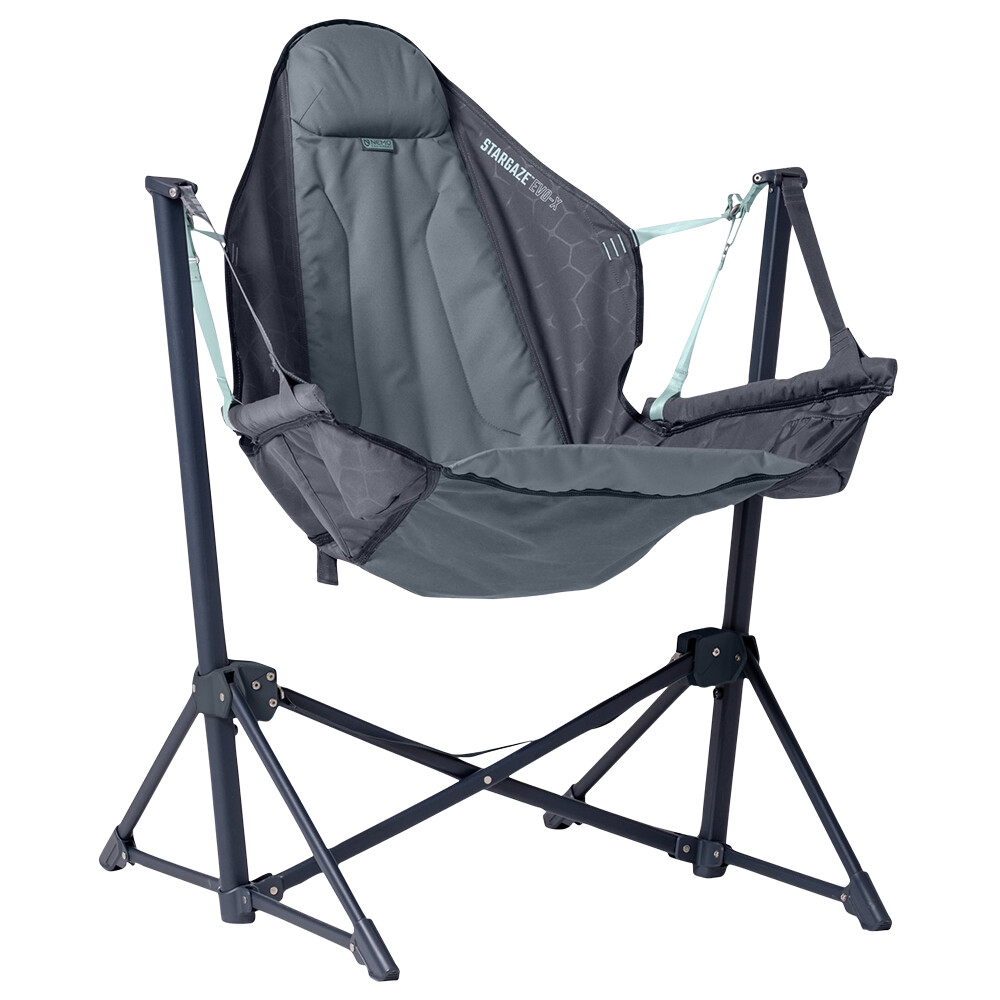 Kreslo Stargaze Evo-X od značky Nemo vám poskytne pohodlné posedenie a navyše aj príjemné pohojdanie. Rám je vyrobený z odolného leteckého hliníka a všetko je pripravené pre veľmi jednoduché zostavenie, v jednom kroku. Nepotrebujete náradie a nie je nutné zložito nastavovať jednotlivé diely. Zároveň si kreslo Stargaze Evo-X zachováva svoju celkovú polohovateľnosť (nastavenie sklonu chrbtovej opierky, možnosť opretia lakťov a výškovo nastaviteľnú opierku hlavy). Po stranách nájdete vrecká na odloženie nápoja, mobilného telefónu alebo čelovky. Vďaka šiestim oporným bodom je vysoko stabilné na rôznom druhu povrchu (piesok, kamenistý terén, mäkká pôda). Kreslo je certifikovaným Bluesign® produktom. Užite si hladký hojdavý pohyb, ako v hojdacej sieti.