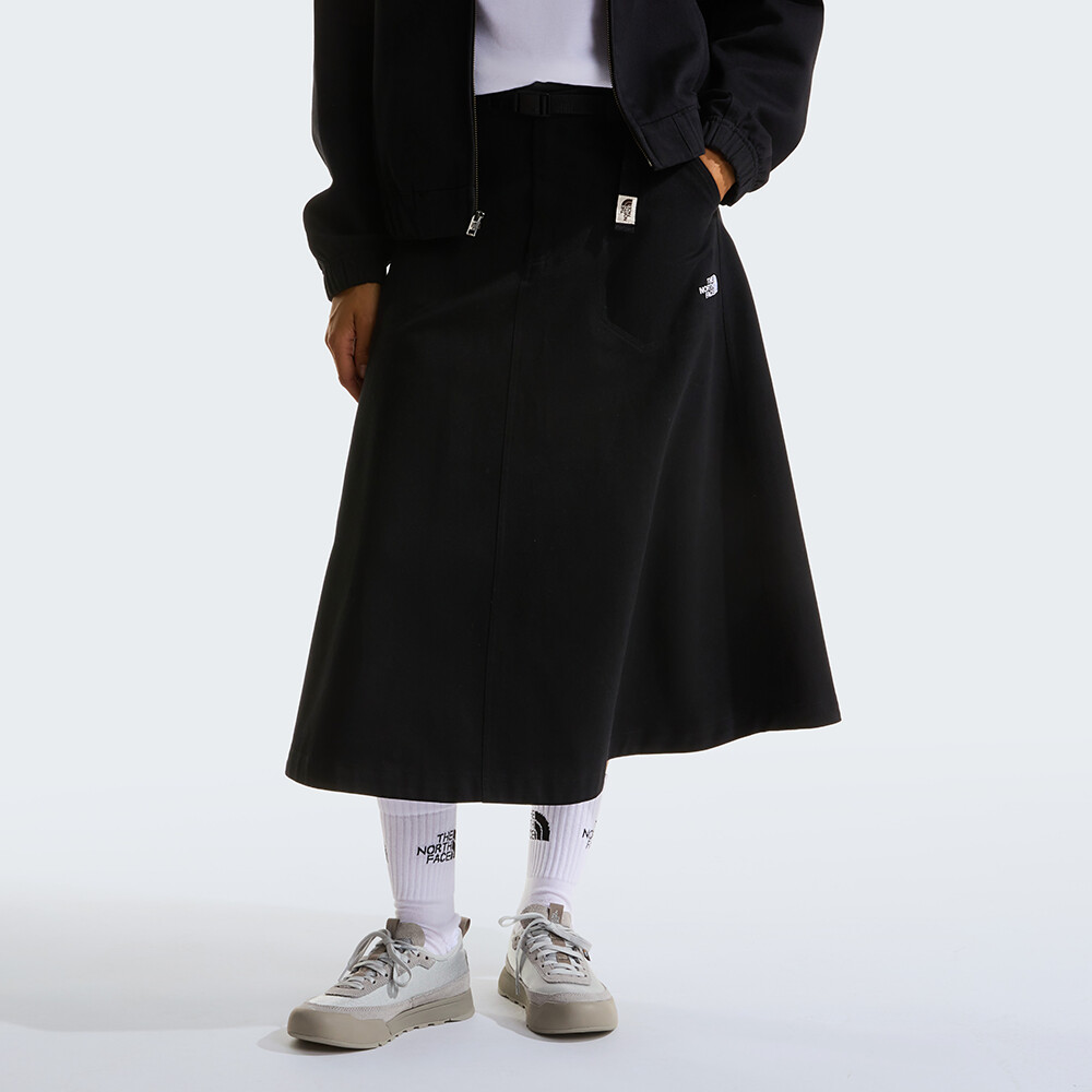 Elegantná plátenná sukňa od spoločnosti The North Face. Vyrobená z pohodlnej, priedušnej bavlny. Sukňa má 2 otvorené vrecká a integrovaný opasok.