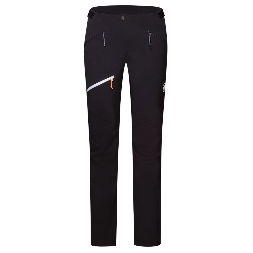 Nohavice sú vyrobené z robustného a priedušného softshellu. Vodeodpudivá úprava ochráni pred ľahkým dažďom. Nastaviteľný pás sa dokonale prispôsobí postave. Dve zipsové vrecká sú prístupné aj v lezeckom úväzku alebo s bedrovým pásom batohu. Na nohavici je umiestnené praktické vrecko na zips. Nohavice majú sťahovací asymetricky tvarovaný lem pre optimálne sadnutie s horolezeckými topánkami.