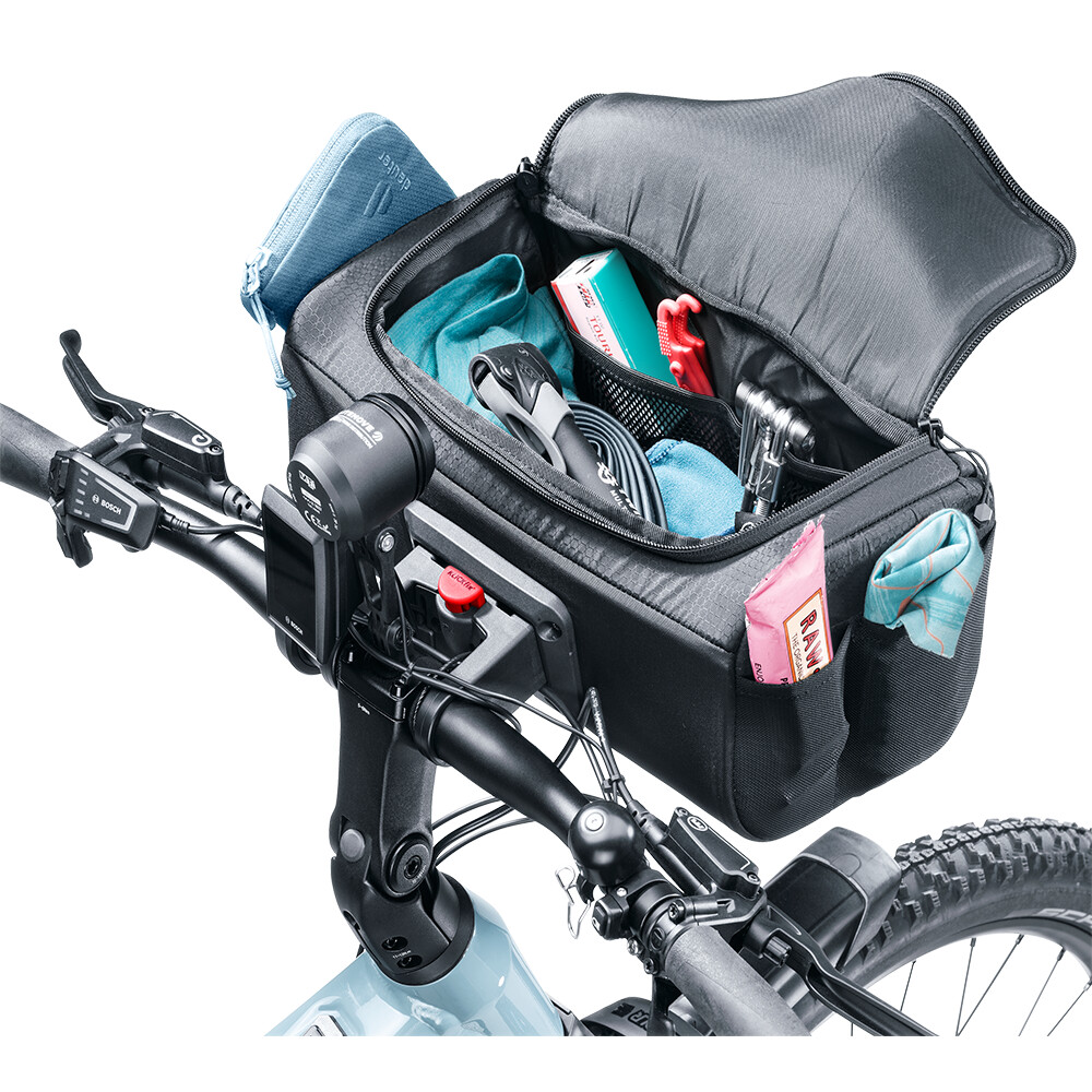 Praktická brašna deuter sa upevňuje na riadidlá bicykla. Má objem 8 l, hlavný priestor má dvojcestný zips a v hornej časti nájdete gumičku na pripevnenie bundy alebo iného vybavenia. Tašku jednoducho pripevnite na riadidlá pomocou systému KlickFix (rýchloupínací adaptér na bicykel - nie je súčasťou balenia).