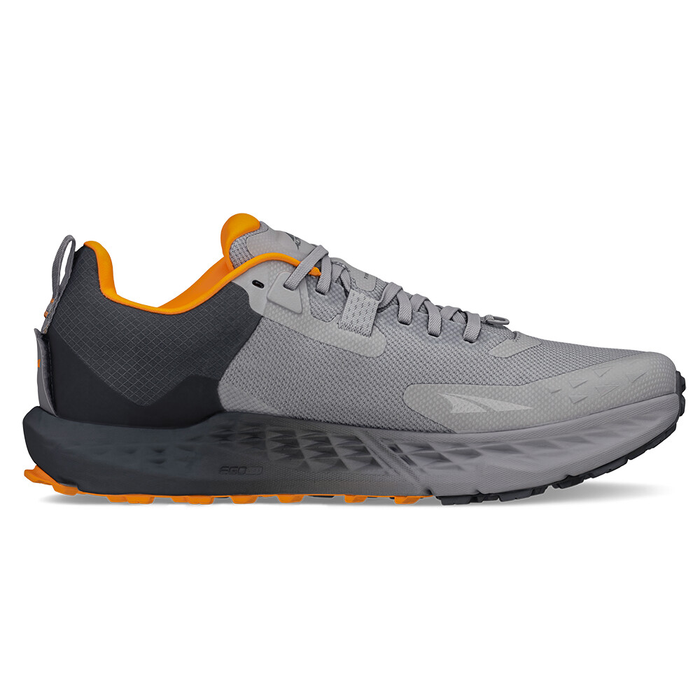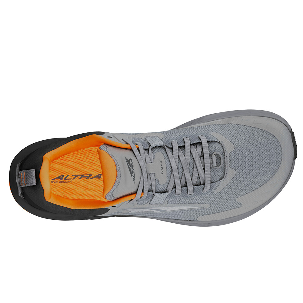 Konštrukcia topánky Timp 5 Men bola podriadená jedinému cieľu. Získať trailovú obuv, ktorá znesie skutočne intenzívne nasadenie. Jej ergonomický strih dokonale kopíruje tvar chodidla a umožňuje prirodzené rozprestretie prstov. Priedušný vrchný materiál udržuje príjemnú vnútornú klímu za sparných letných dní a zosilnená penová medzipodrážka Altra EGO™ MAX výrazne znižuje záťaž, s ktorou sa musí vysporiadať váš kĺbový aparát.