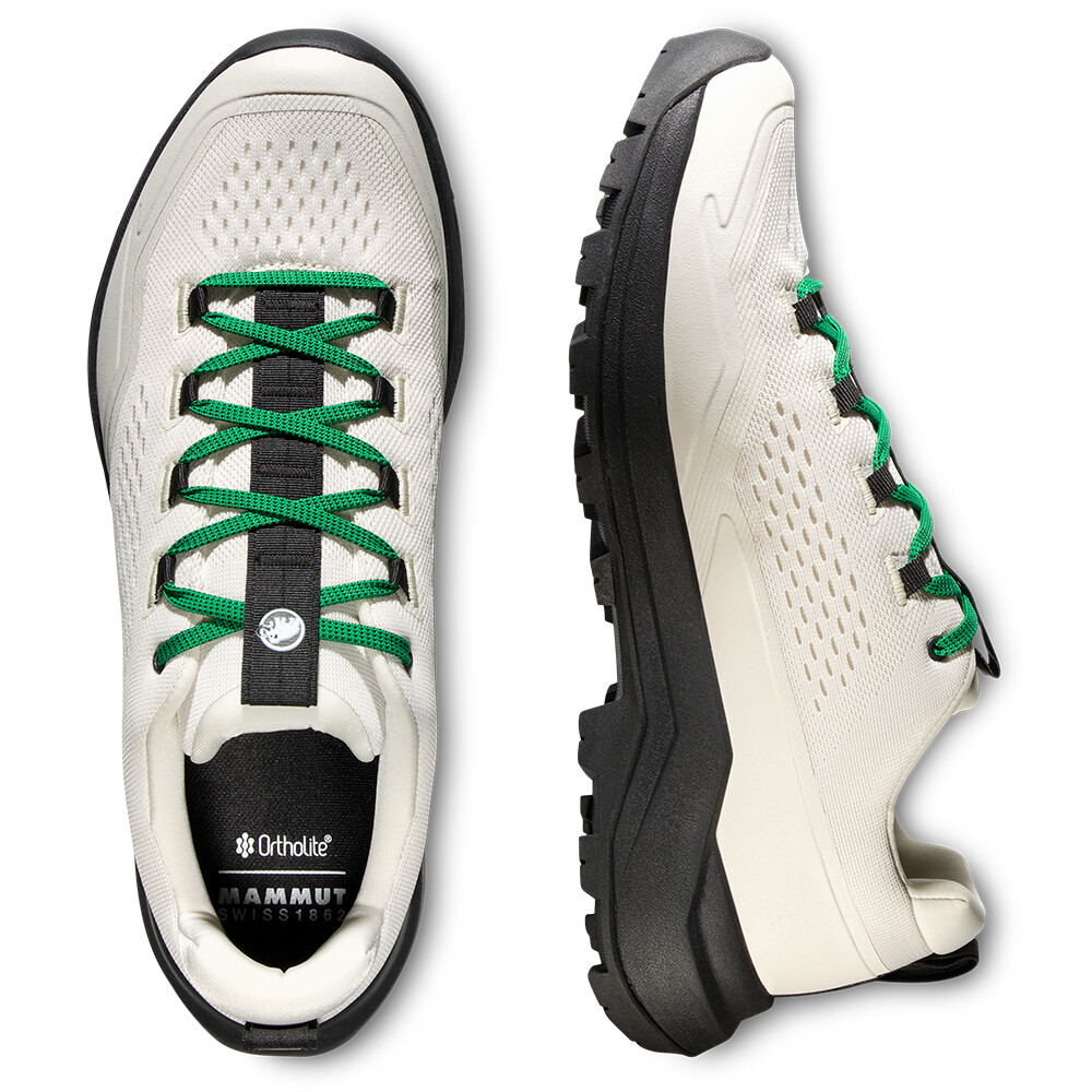Priedušný vrchný materiál zo sieťoviny zaisťuje účinné vetranie, takže vaše nohy budú mať celodenné pohodlie aj počas sparného leta. Medzipodrážka z pamäťovej peny dokonale odpruží váš došľap a priľnavá podrážka Mammut Swiss Design sa postará o perfektné držanie na zemi.