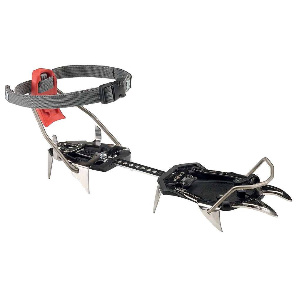 Desať-hrotové mačky Camp vyrobené zo švédskej ocele Sandvik Nanotech. Oceľ Nanotech je o 30% pevnejšia a 20% ľahšia ako bežne používaná CrMo oceľ. Hrúbka plechu je preto len 1,8 mm. Tenšie hroty lepšie vnikajú do ľadu a mačky sú samozrejme aj ľahšie. Automatické upínanie možné nasadiť na horolezecké topánky alebo skialpové lyžiarky. Výborná voľba pre klasický alpinizmus alebo náročnú VHT.