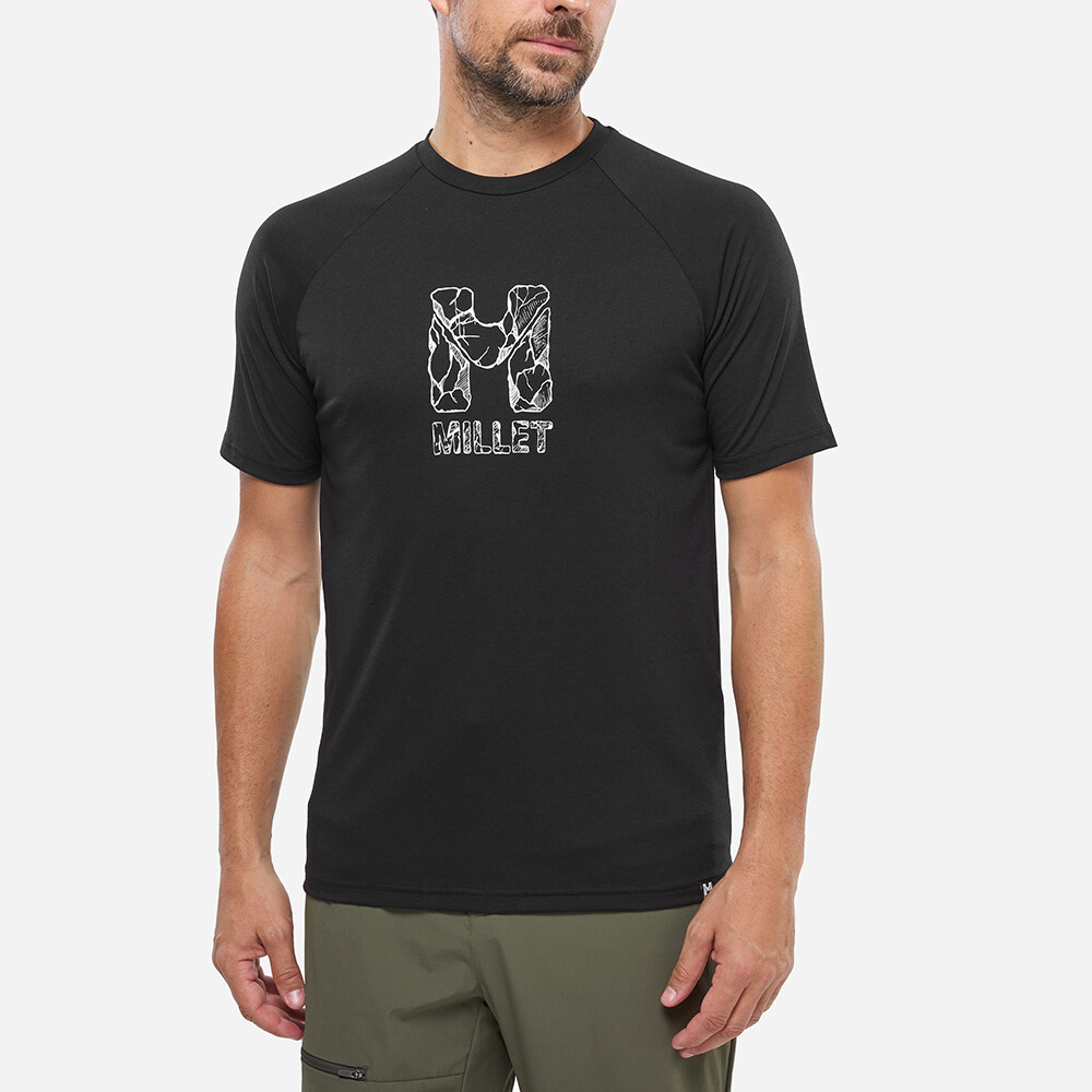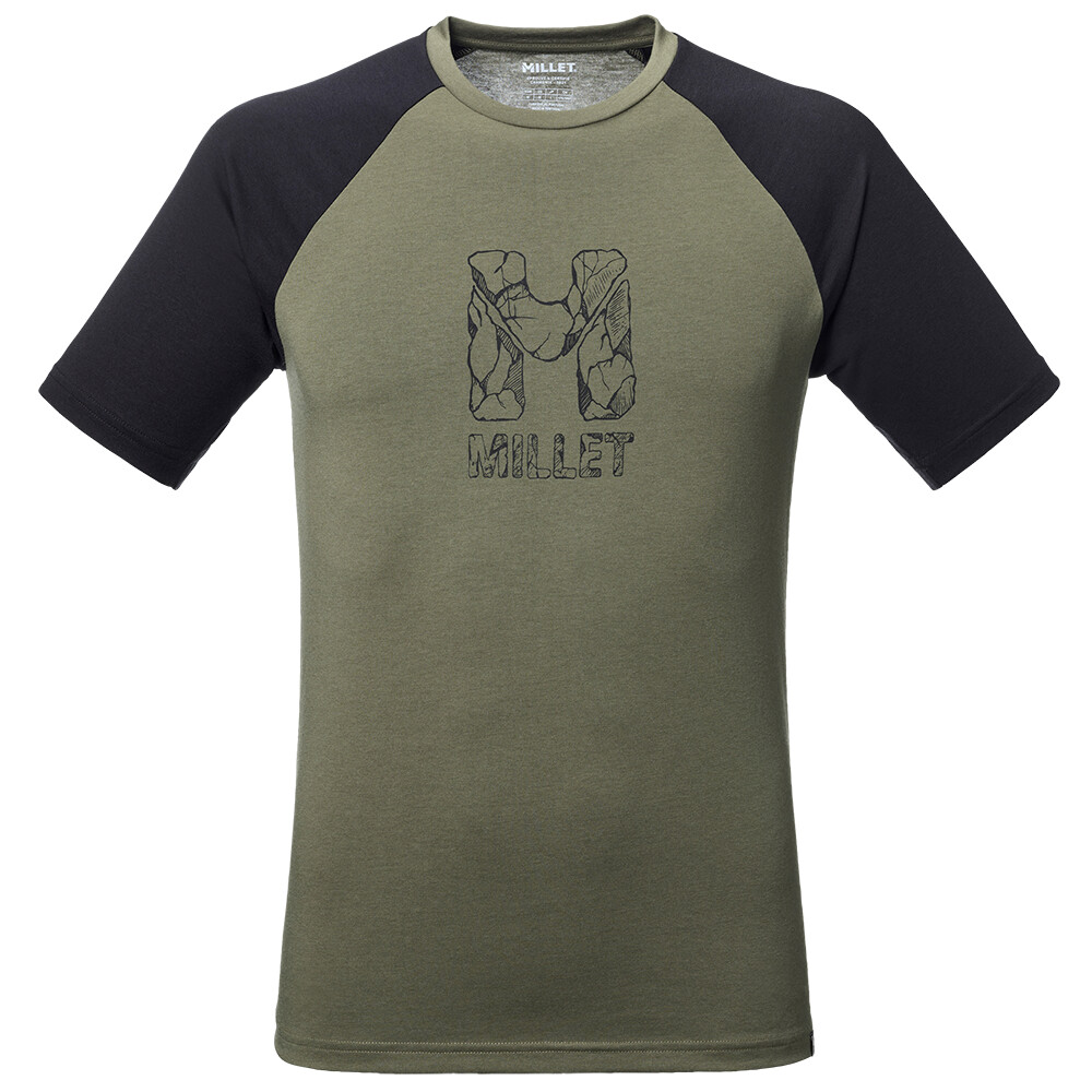 Tričko je vyrobené zo zmesi udržateľnej viskózy a recyklovaného polyesteru, vďaka čomu je nielen ekologickejšie, ale aj prirodzene antibakteriálne a vhodné na dlhšie výstupy. Pohodlný strih s raglánovými rukávmi neobmedzuje pohyb na stene ani pri boulderingu, zatiaľ čo okrúhly výstrih a krátke rukávy zaručujú všestranné využitie. Originálna grafika Millet na hrudi, inšpirovaná skalným terénom, podčiarkuje lezecký charakter trička a robí z neho štýlový kúsok aj na voľný čas.