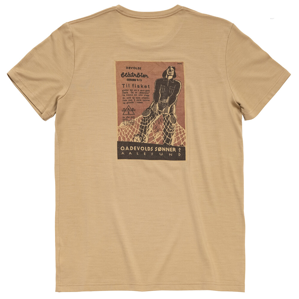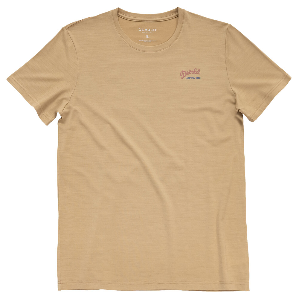 Pánske merinové tričko Premium Woodworker Tee od nórskej firmy Devold s grafikou na chrbte. Príjemné a pohodlné, či už si ho vezmete na jogu, inline korčule, do práce alebo v ňom budete cestovať.
