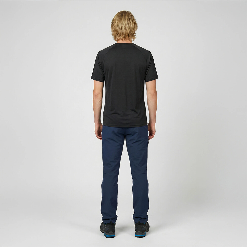 Tričko je vyrobené z kombinácie polyesteru a Virgin vlny. Vďaka tomu je tričko izolačné, priedušné, rýchloschnúce a hreje aj pri navlhnutí. Strih s raglánovými rukávmi neobmedzuje v pohybe a je príjemné pri nosení batohu.
